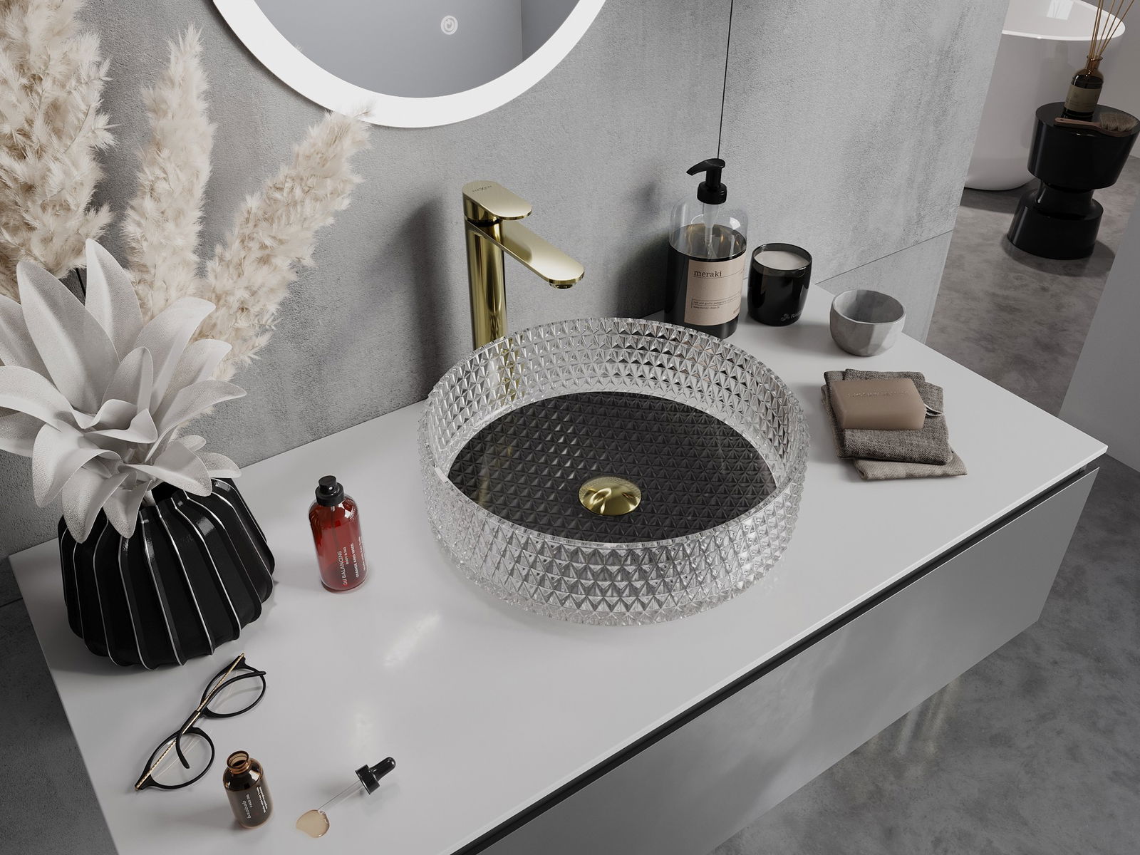 Мивката се отличава с уникална структура на кристали, която ѝ придава неповторим и изключително ефектен вид. Кристалите блестят на светлината, привличат погледа и добавят елегантност. Практично и стилно решение за всяка баня.
