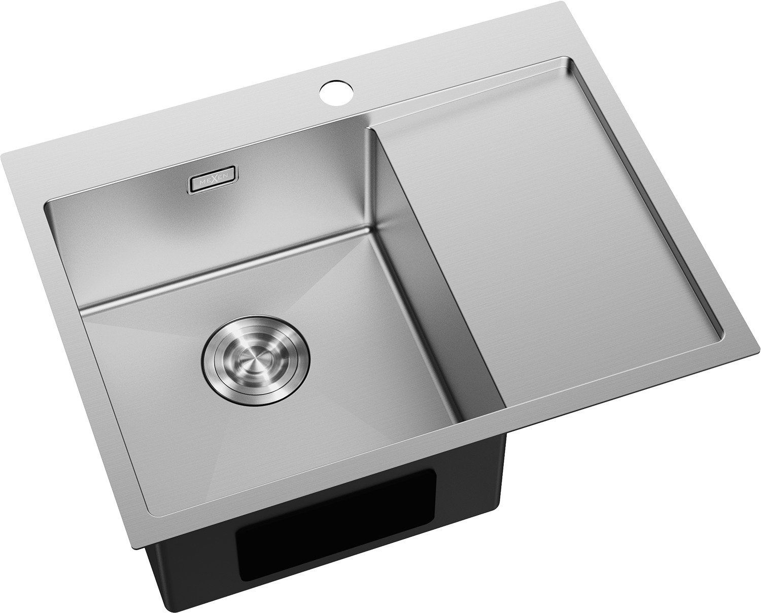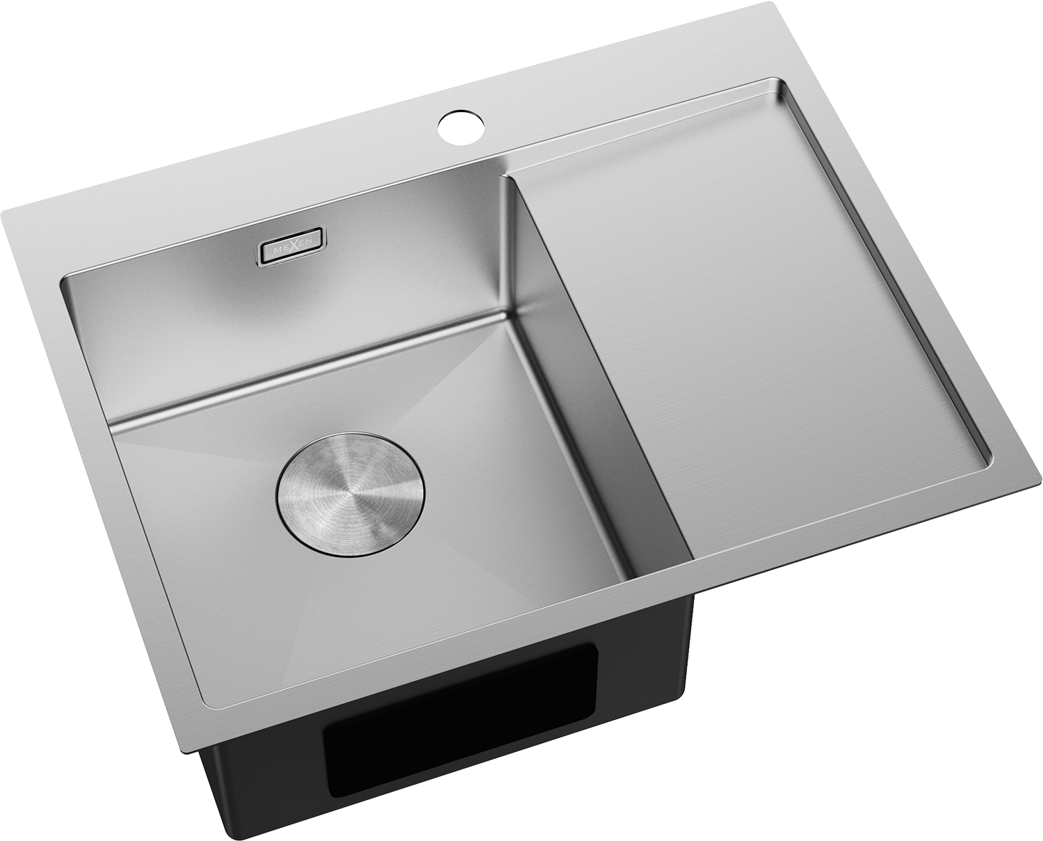 Mexen Exar стоманена кухненска мивка с 1 отделение и отвод, лява 620 x 480 mm,