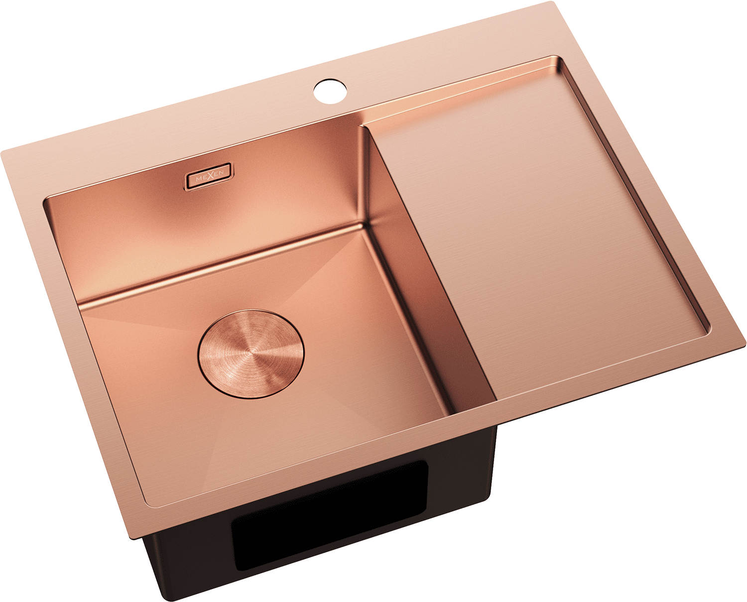 Mexen Exar стоманена мивка с 1 отделение и ляво отцеждащо поле 620 x 480 mm, мед - 6431621005L-65