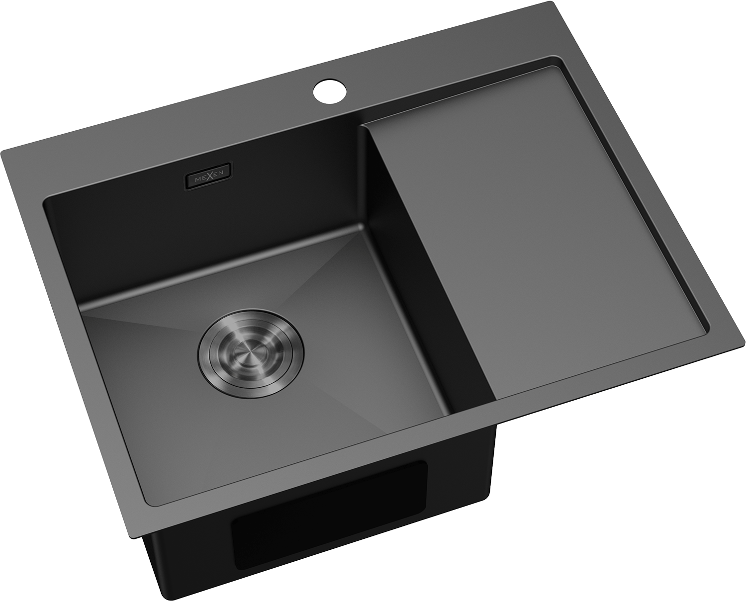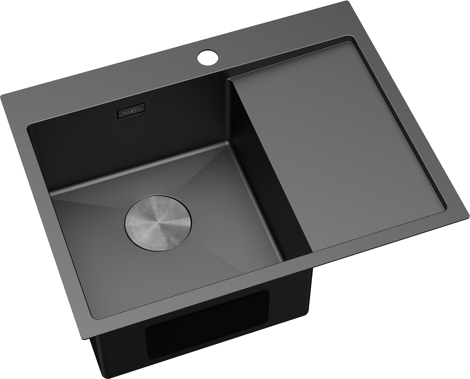 Mexen Exar стоманена мивка с едно корито с отцедник, лява 620 x 480 мм, черна