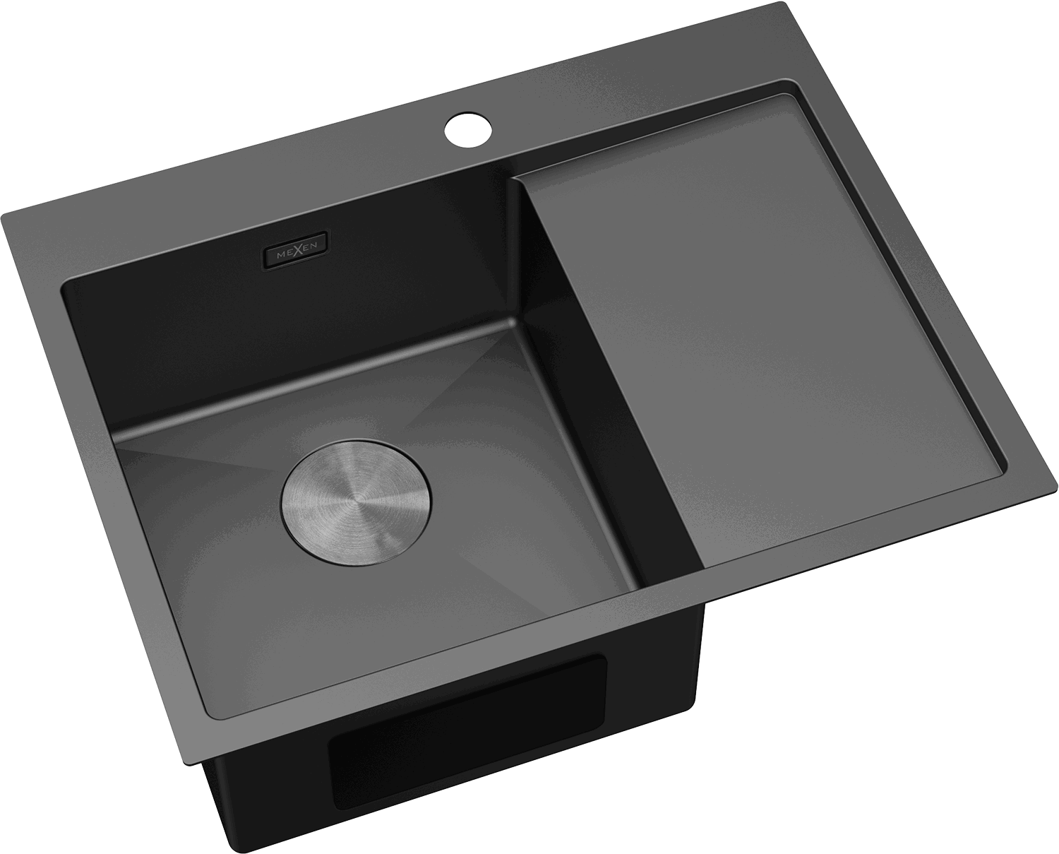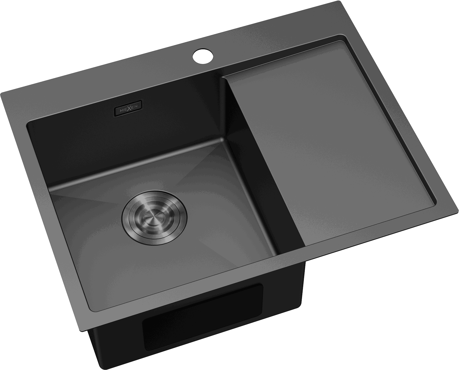 Mexen Exar стоманена мивка с едно корито с отцедник, лява 620 x 480 мм, черна