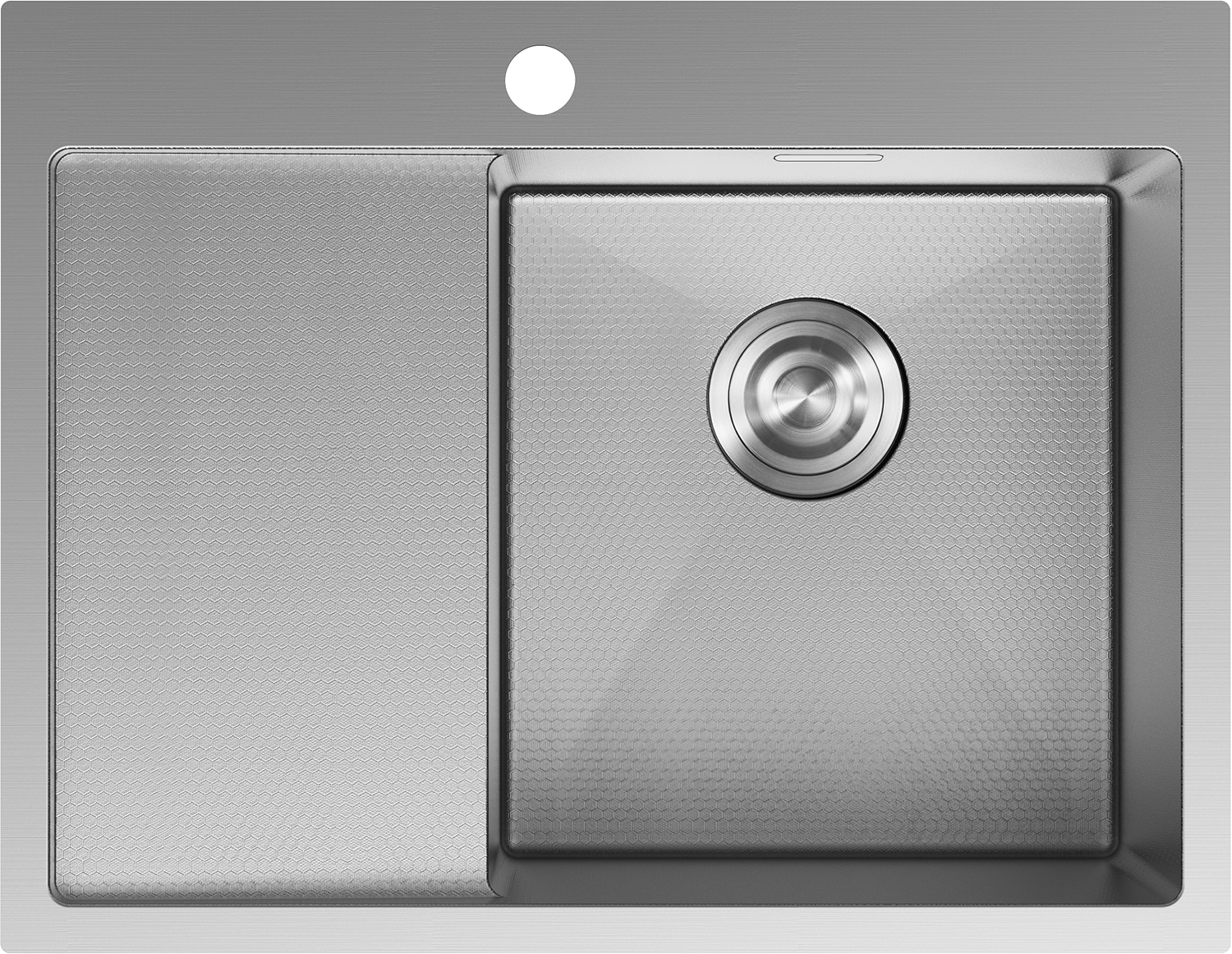 Мивката разполага със скрит преливен отвор, който предпазва от преливане, като същевременно запазва елегантния вид. Дискретно вписан в стената на мивката, той не нарушава нейната естетика. Това е практично и стилно решение, съчетаващо безопасност с модерен дизайн.