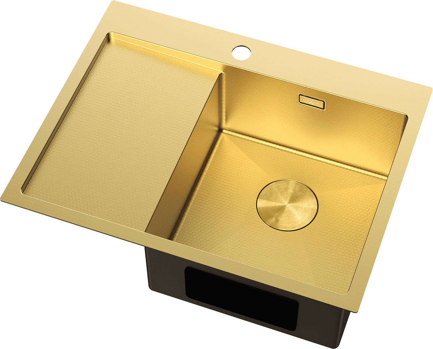 Мивката разполага със скрит преливен отвор, който предпазва от преливане, като същевременно запазва елегантния вид. Дискретно вписан в стената на мивката, той не нарушава нейната естетика. Това е практично и стилно решение, съчетаващо безопасност с модерен дизайн.