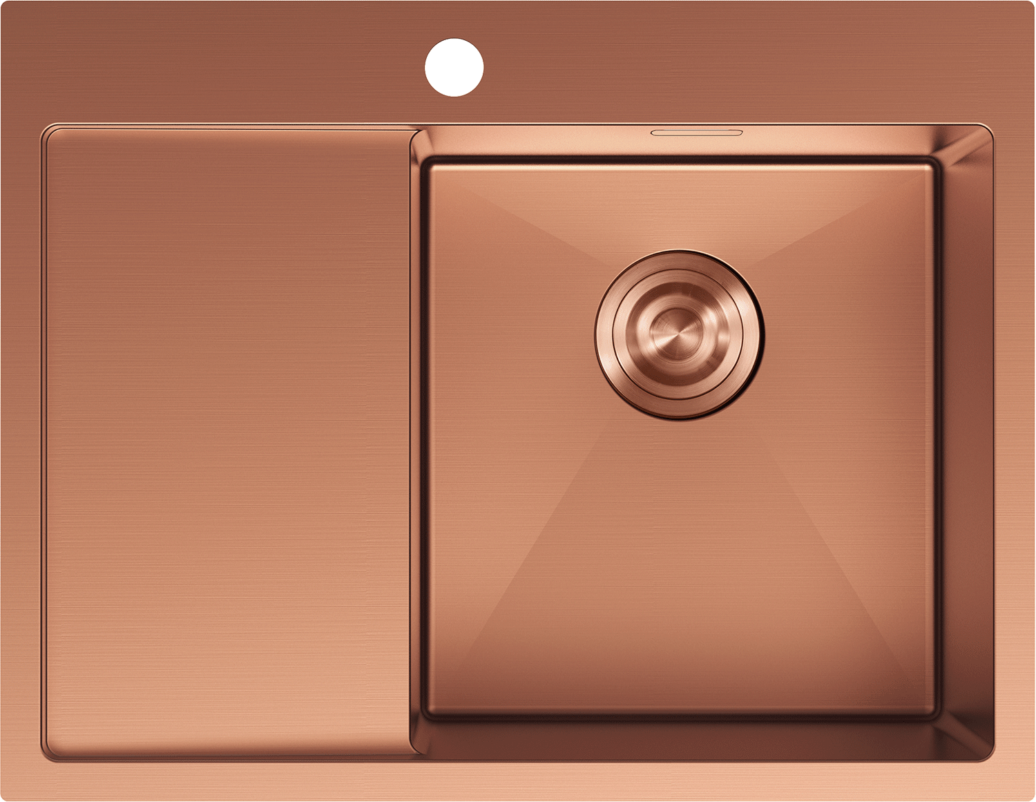 Мивката разполага със скрит преливен отвор, който предпазва от преливане, като същевременно запазва елегантния вид. Дискретно вписан в стената на мивката, той не нарушава нейната естетика. Това е практично и стилно решение, съчетаващо безопасност с модерен дизайн.