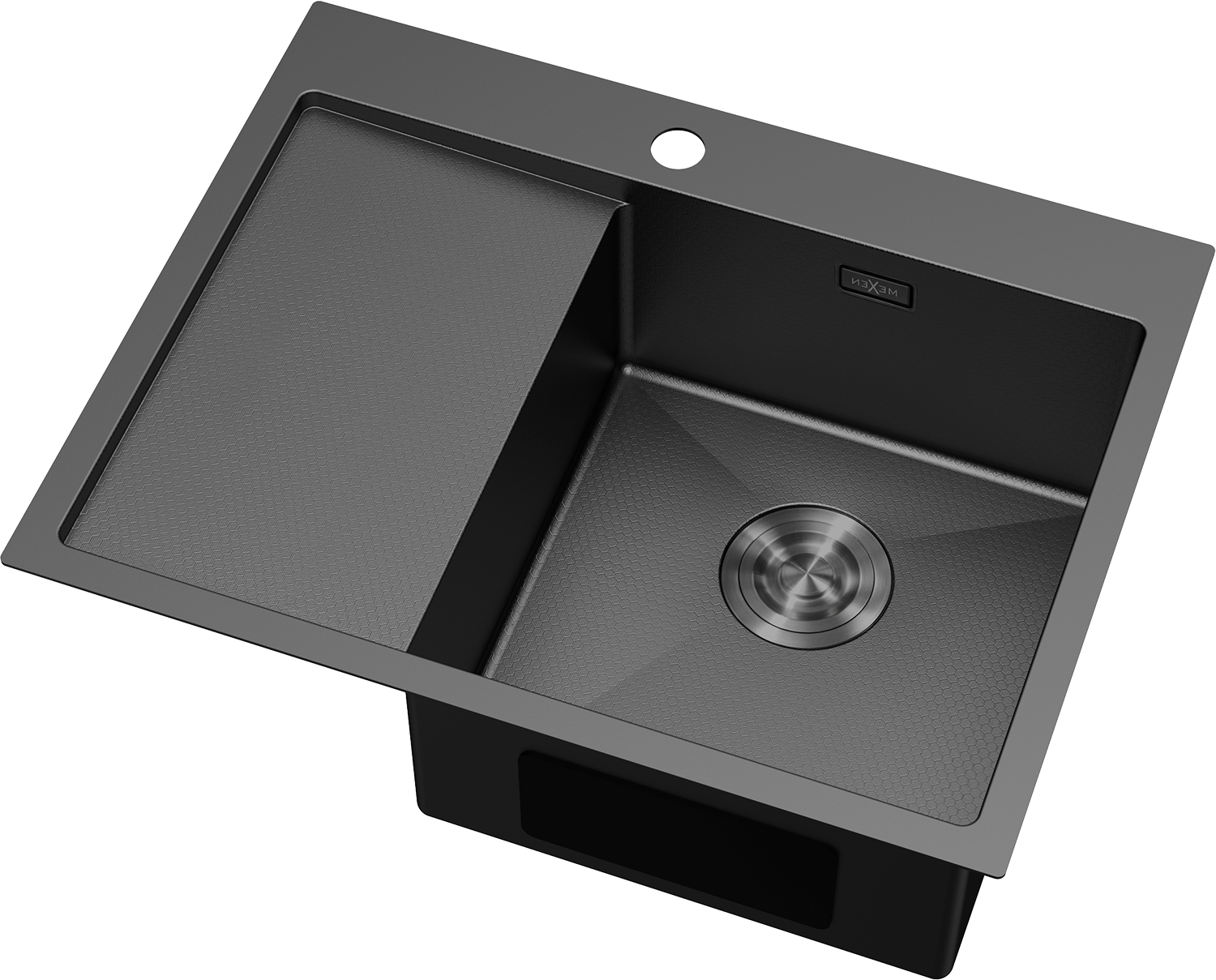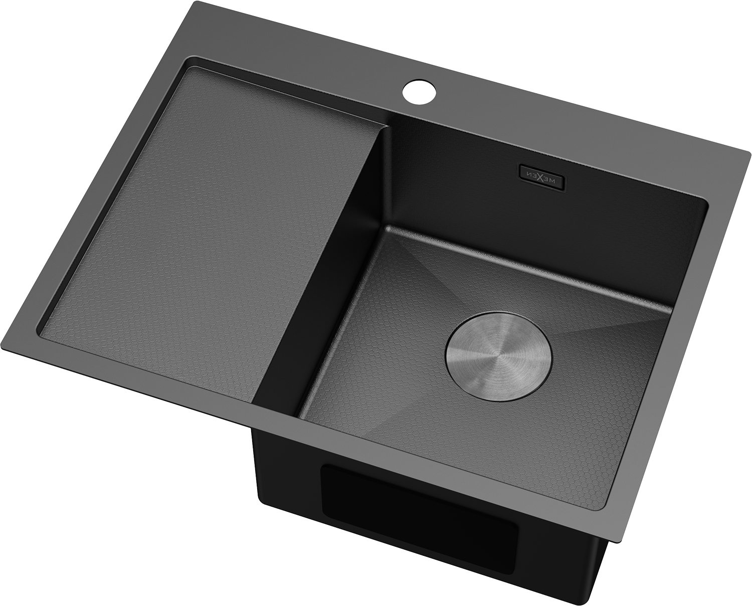 Mexen Exar стоманена мивка с 1 отделение и десен отцеждач 620 x 480 mm, черен HC -6432621005P-70HC