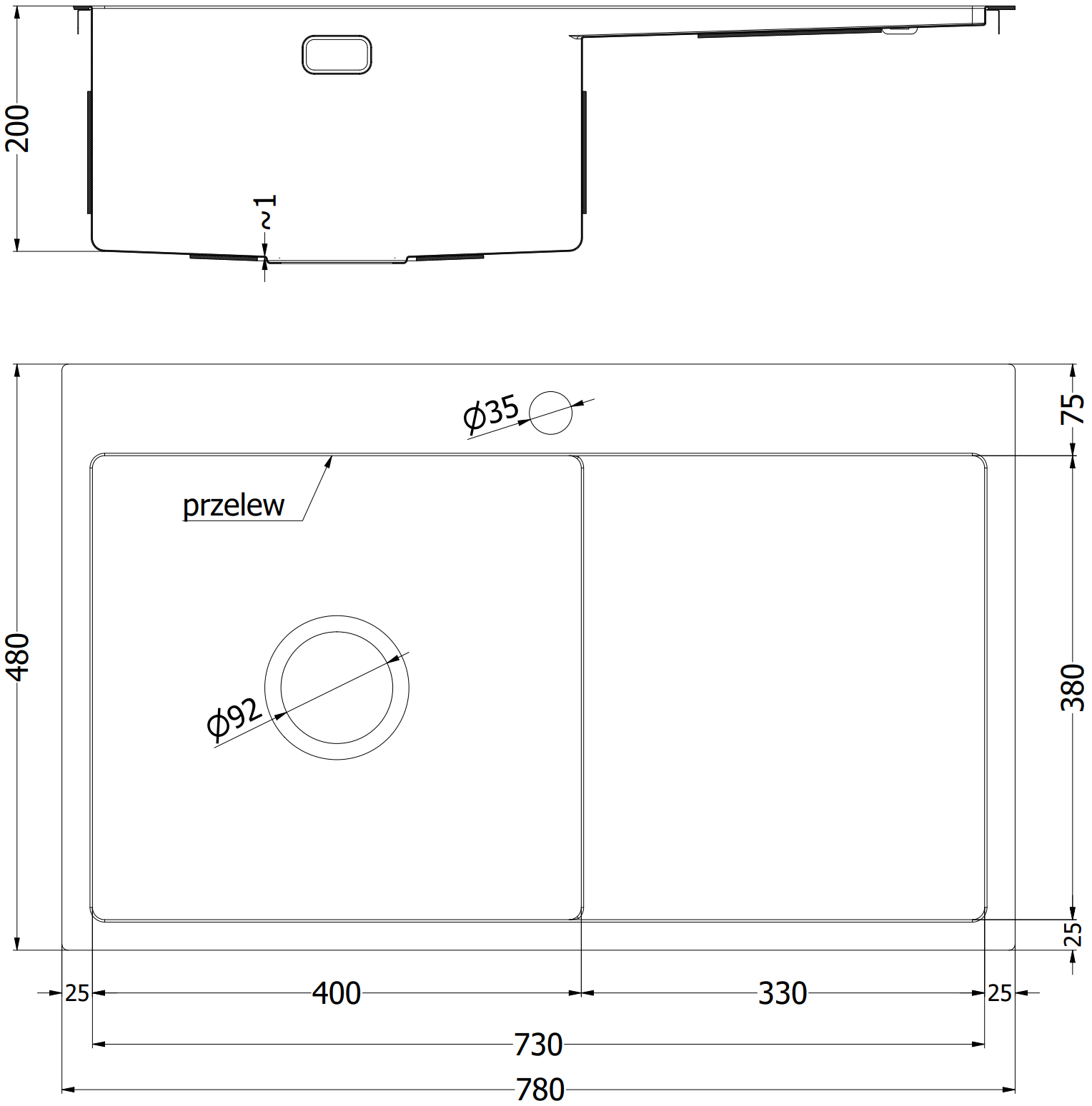 Повърхността на мивката е много добре втвърдена и се отличава с изключителна устойчивост на механични повреди и надрасквания. Издръжливият материал на изработката позволява да се насладите на добрия вид на мивката в продължение на много години употреба.
