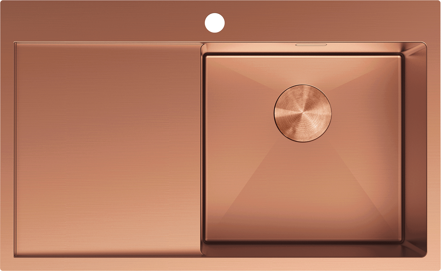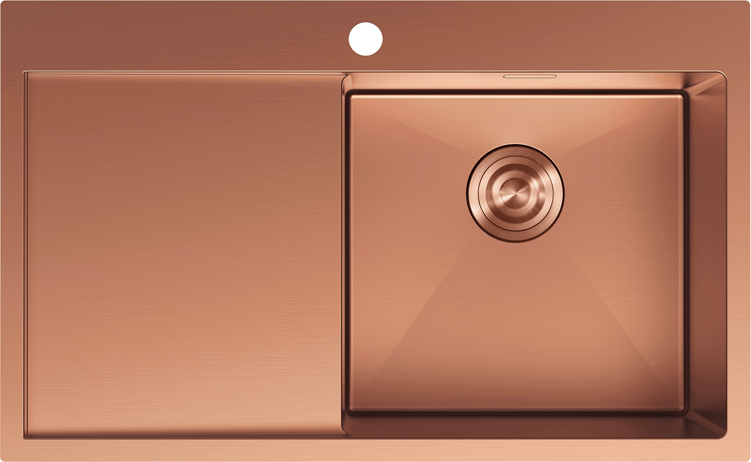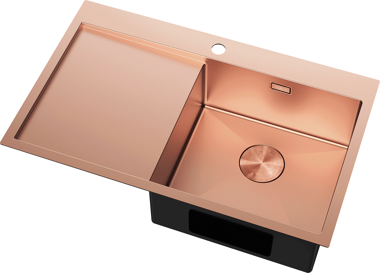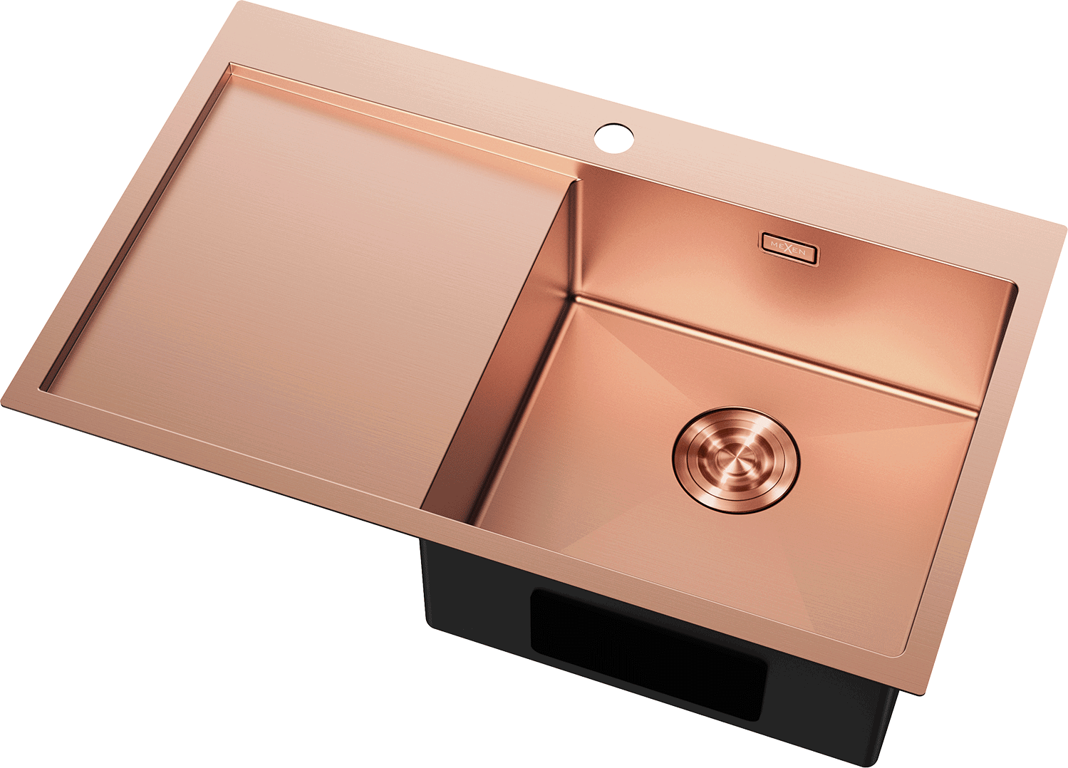Mexen Exar стоманена мивка с една камера и дренаж, дясна 780 x 480 mm, мед