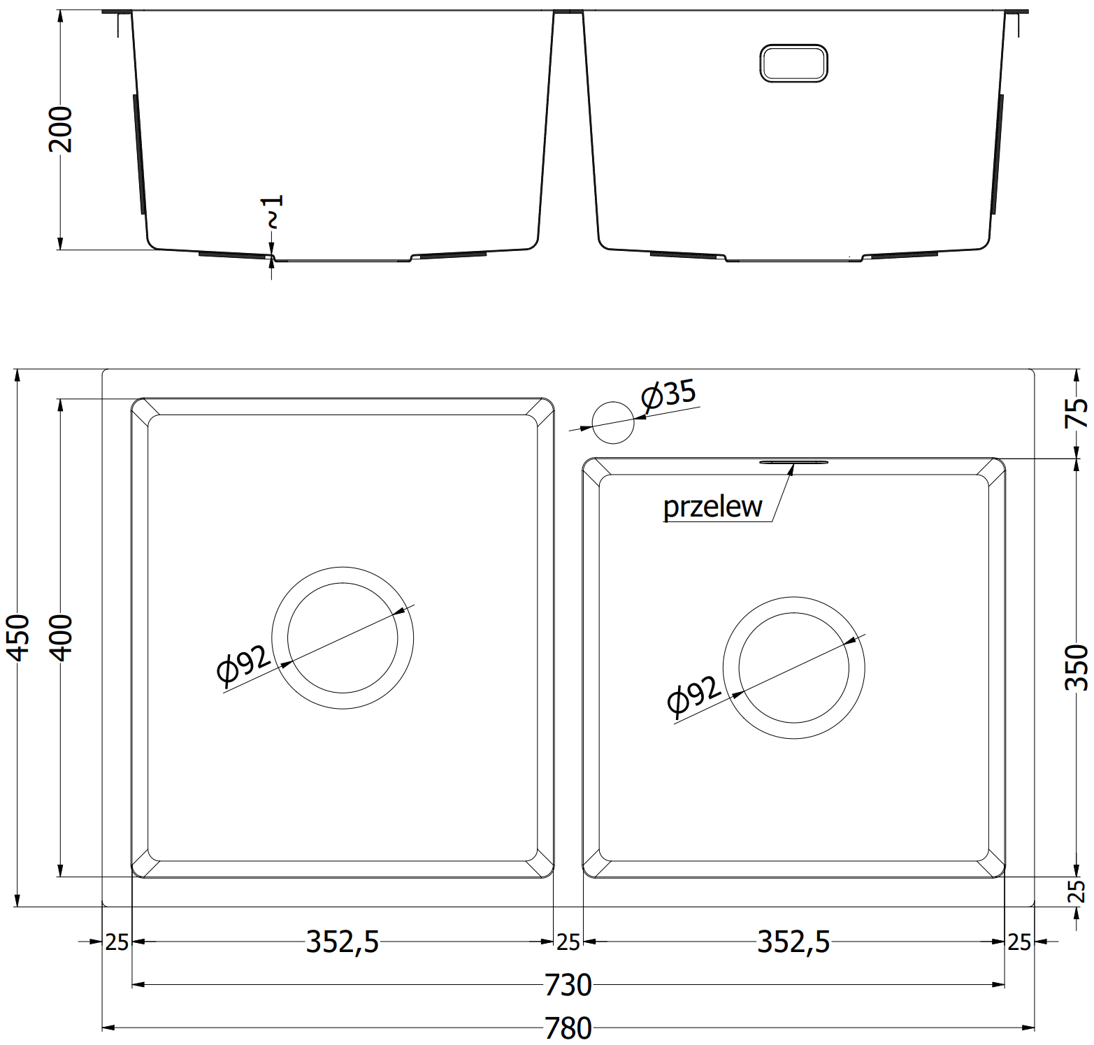 Диаметър на оттока: Ø92 mm