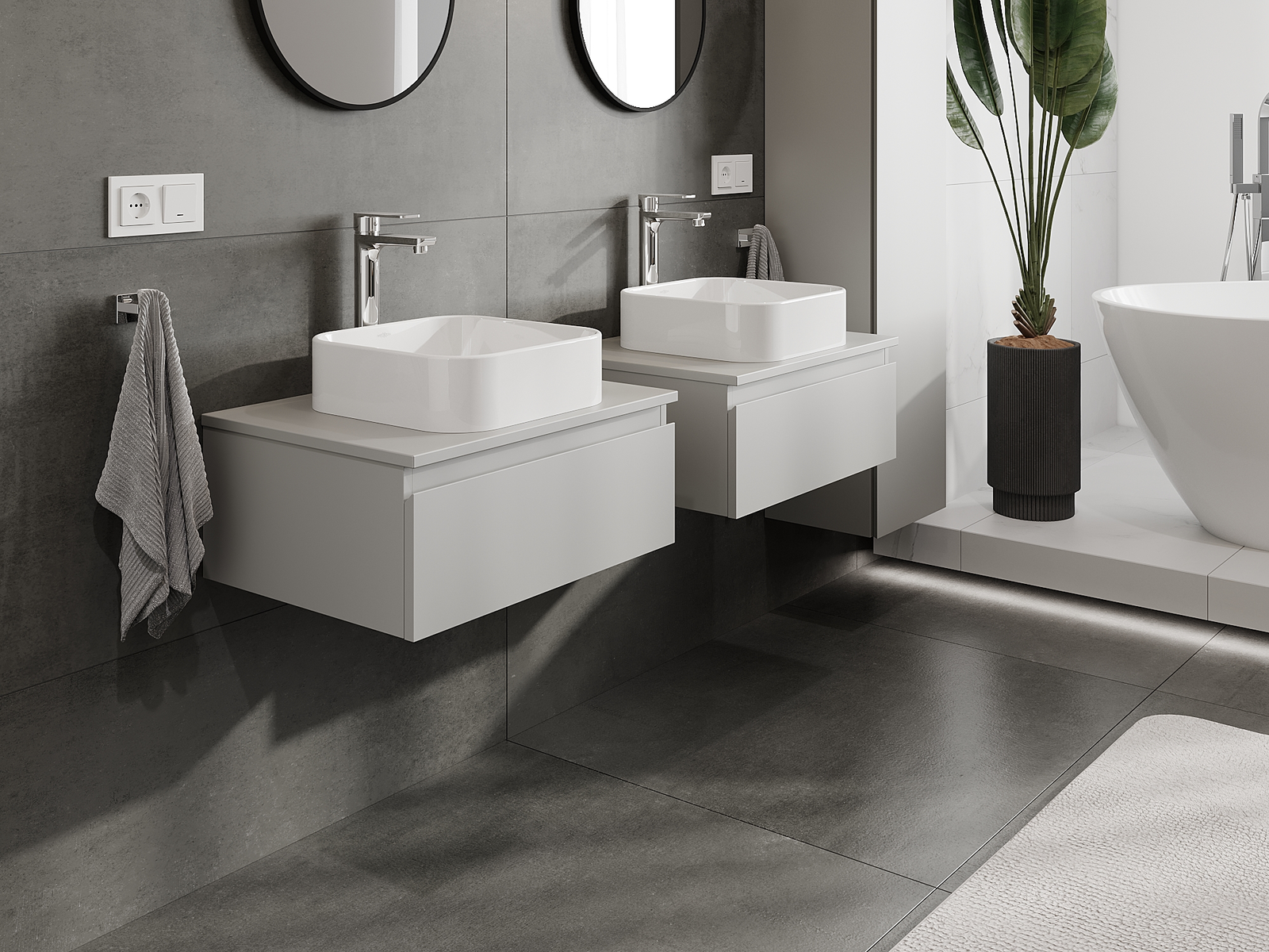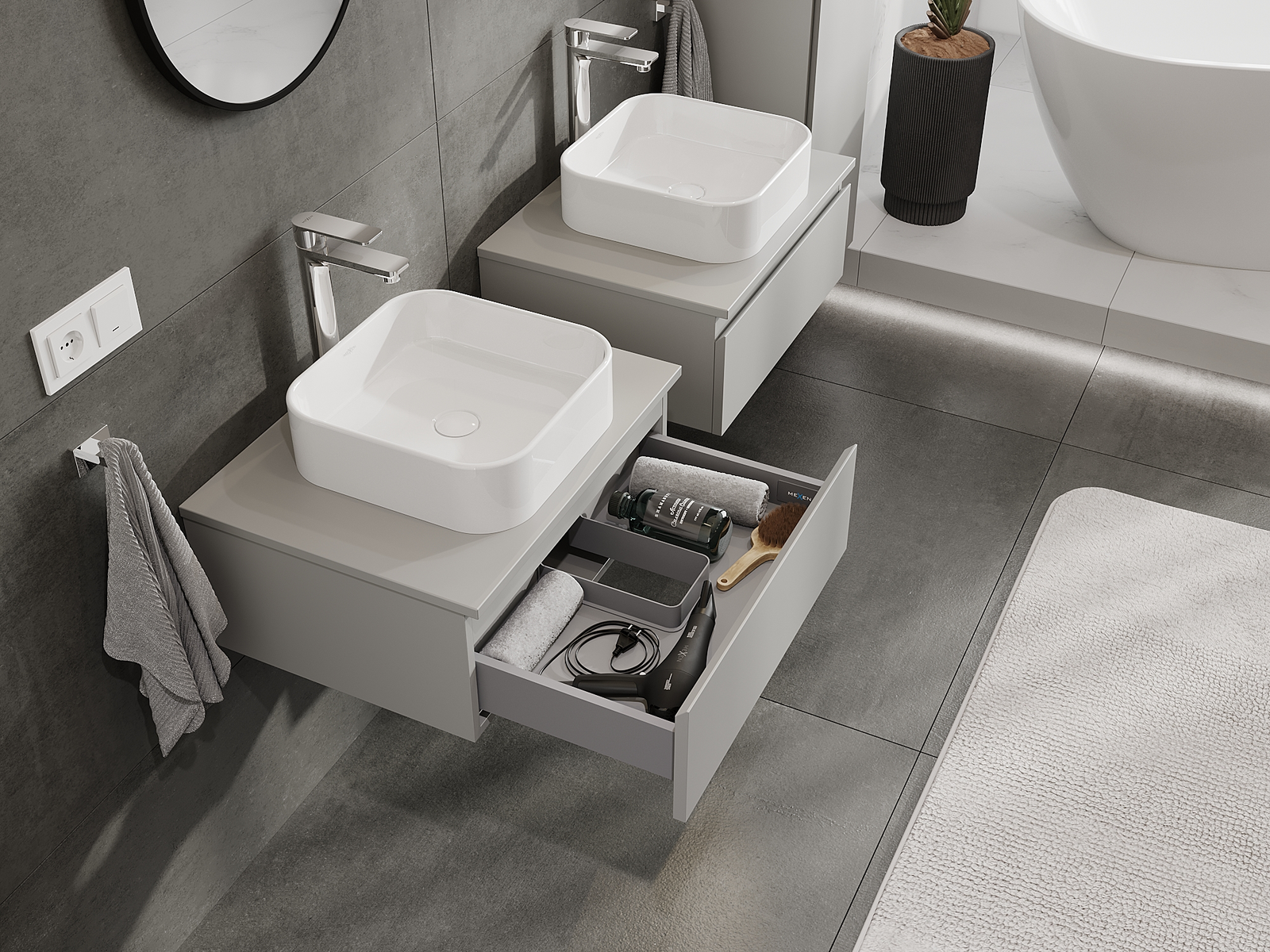 Нашите модулни мебели за баня могат да се комбинират в различни цветови конфигурации, което позволява пълна персонализация. Може да се избере както външният вид, така и функциите на отделните елементи, което позволява съчетаване на мебелите със собствените стилови и функционални предпочитания.