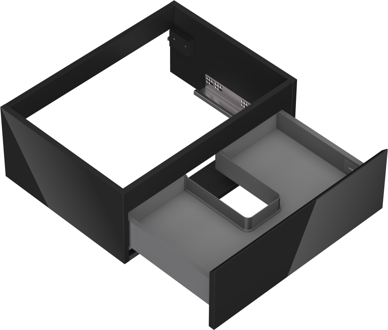Изрезът в чекмеджето е проектиран по такъв начин, че да побере сифона, който е необходим в мивковите инсталации. Благодарение на това мебелът може да бъде монтиран напълно функционално, без да се налага отказване от пространството в чекмеджето заради инсталацията.