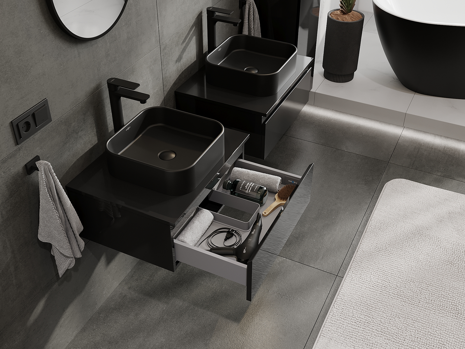 Нашите модулни мебели за баня могат да се комбинират в различни цветови конфигурации, което позволява пълна персонализация. Може да се избере както външният вид, така и функциите на отделните елементи, което позволява съчетаване на мебелите със собствените стилови и функционални предпочитания.