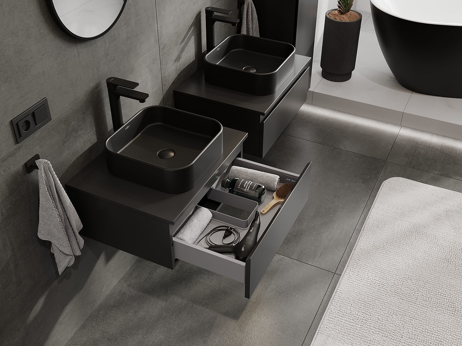 Mexen Orio шкафче за баня под мивка 60 см, 1 чекмедже, черен мат - 91A10-06023-1-BF71