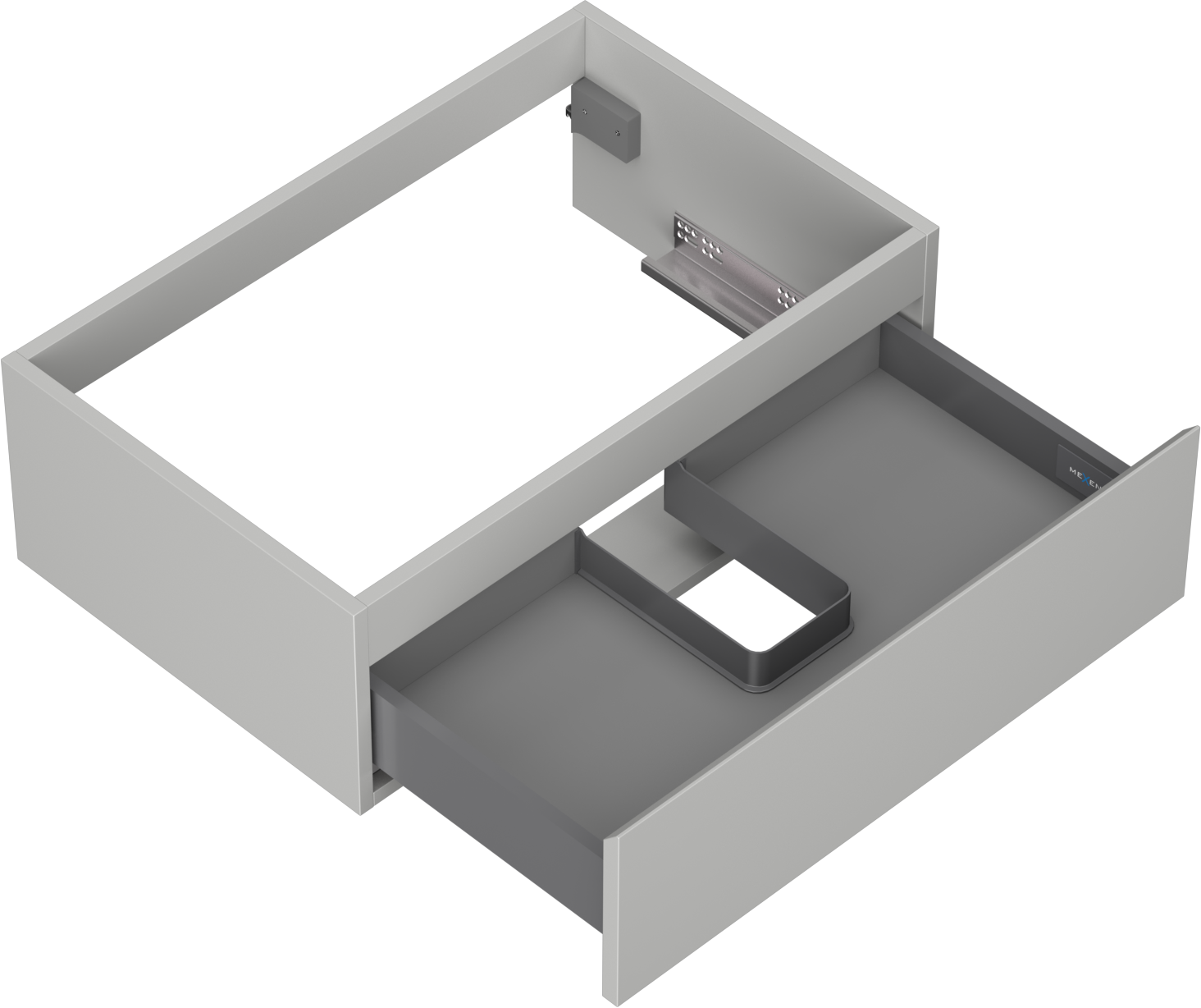 Изрезът в чекмеджето е проектиран по такъв начин, че да побере сифона, който е необходим в мивковите инсталации. Благодарение на това мебелът може да бъде монтиран напълно функционално, без да се налага отказване от пространството в чекмеджето заради инсталацията.