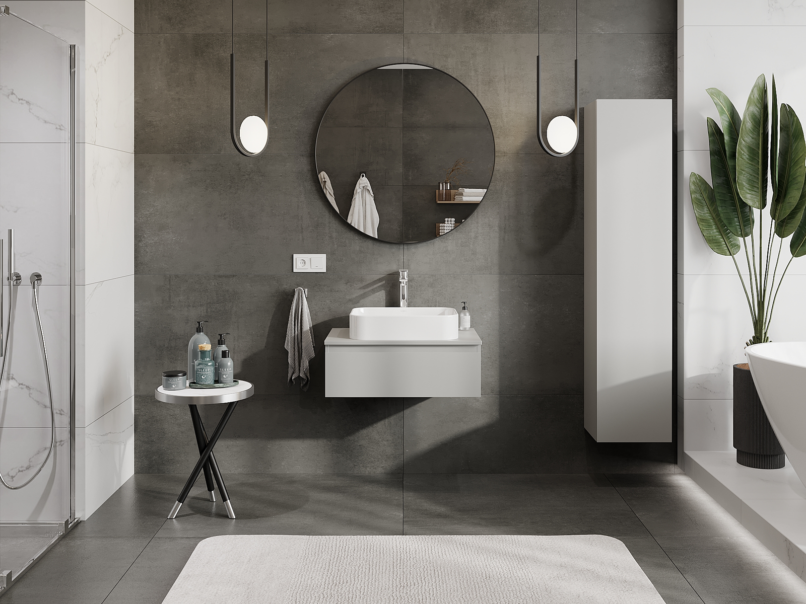 Корпусът на шкафа се доставя напълно сглобен, което означава максимално удобство и спестяване на време. Не е нужно да губите часове за сглобяване на мебела – просто го монтирайте на избраното място в банята. Това е идеалното решение за хора, които ценят бързия монтаж и незабавния ефект.