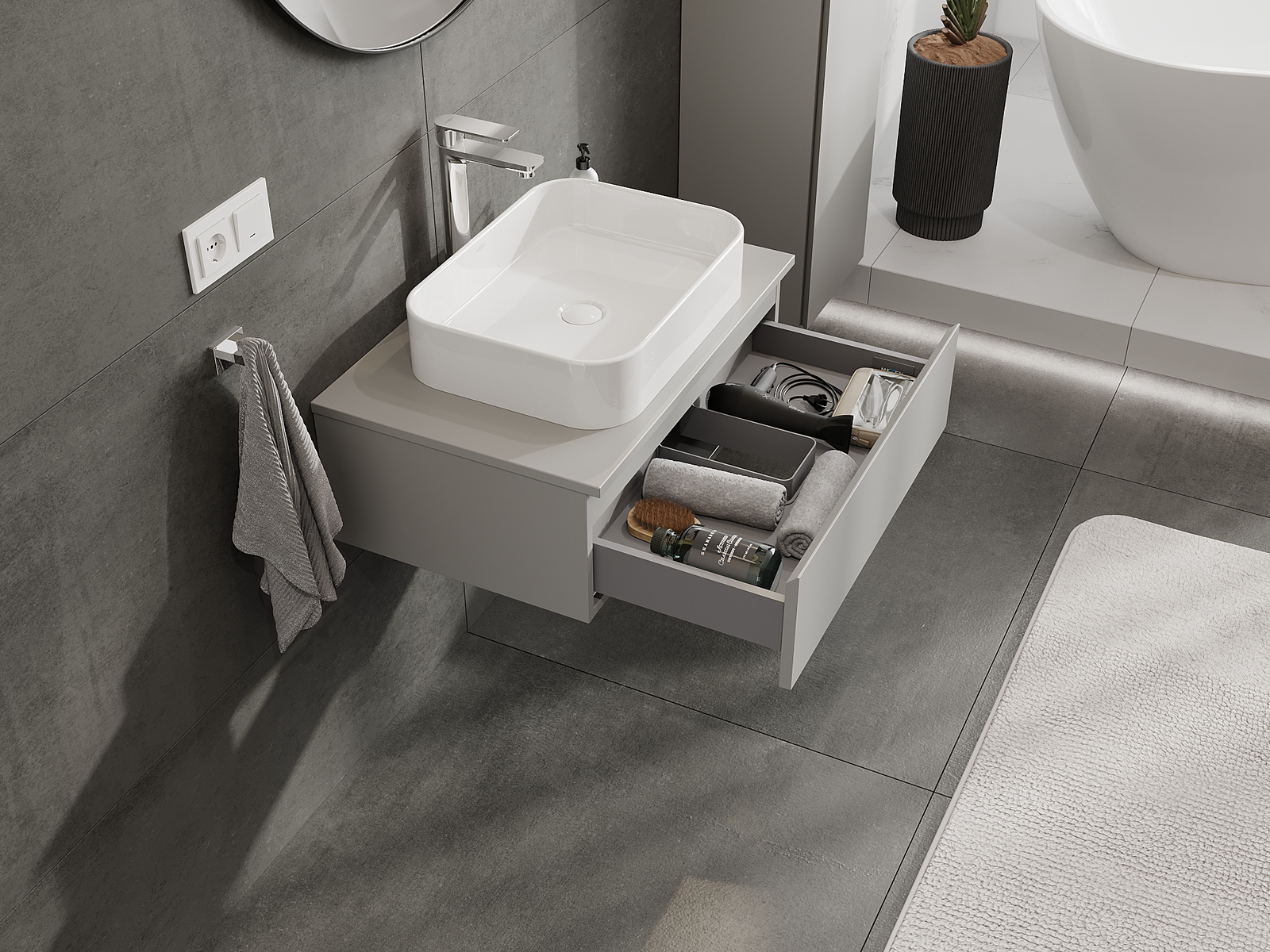 Нашите модулни мебели за баня могат да се комбинират в различни цветови конфигурации, което позволява пълна персонализация. Може да се избере както външният вид, така и функциите на отделните елементи, което позволява съчетаване на мебелите със собствените стилови и функционални предпочитания.