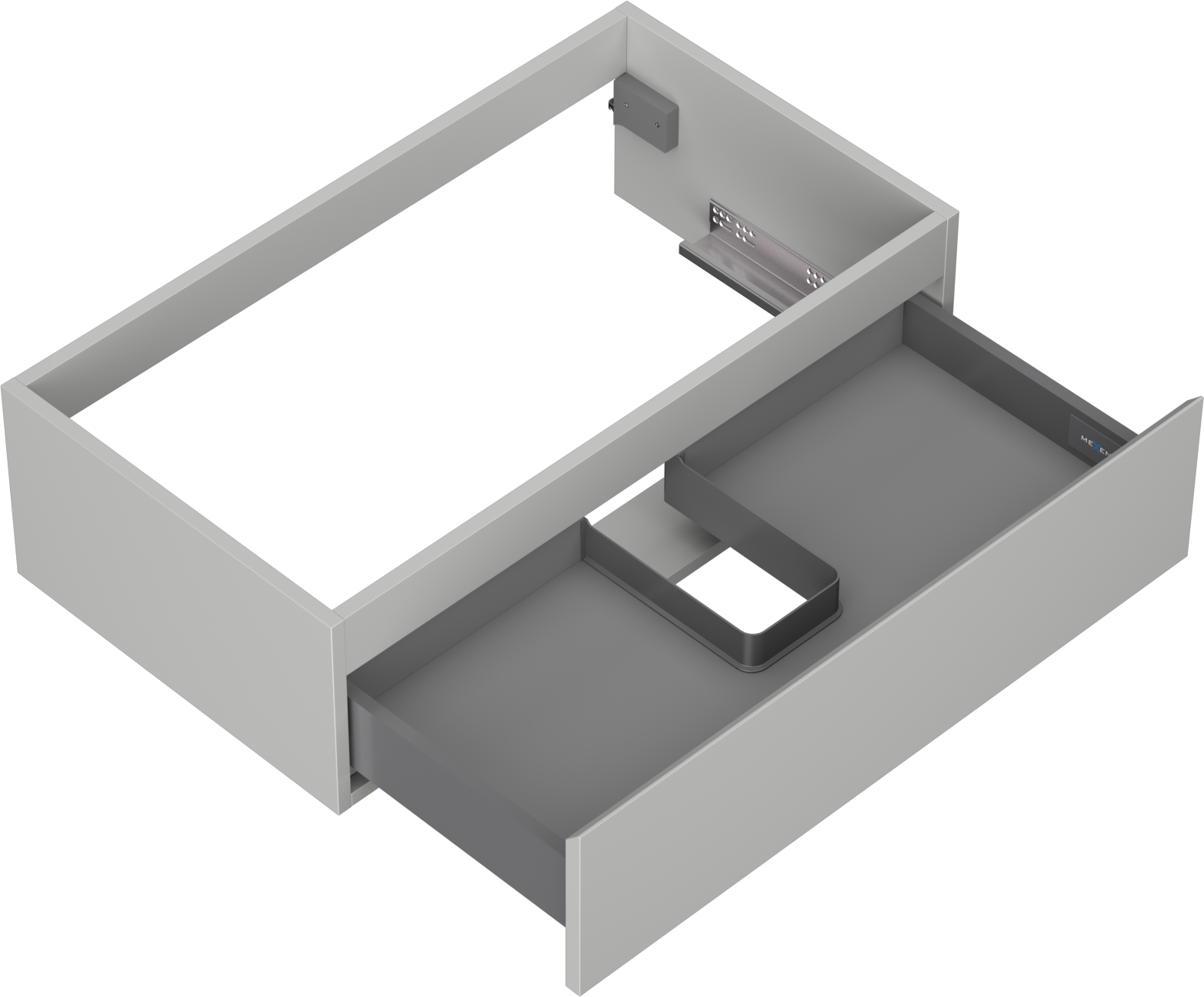 Изрезът в чекмеджето е проектиран по такъв начин, че да побере сифона, който е необходим в мивковите инсталации. Благодарение на това мебелът може да бъде монтиран напълно функционално, без да се налага отказване от пространството в чекмеджето заради инсталацията.