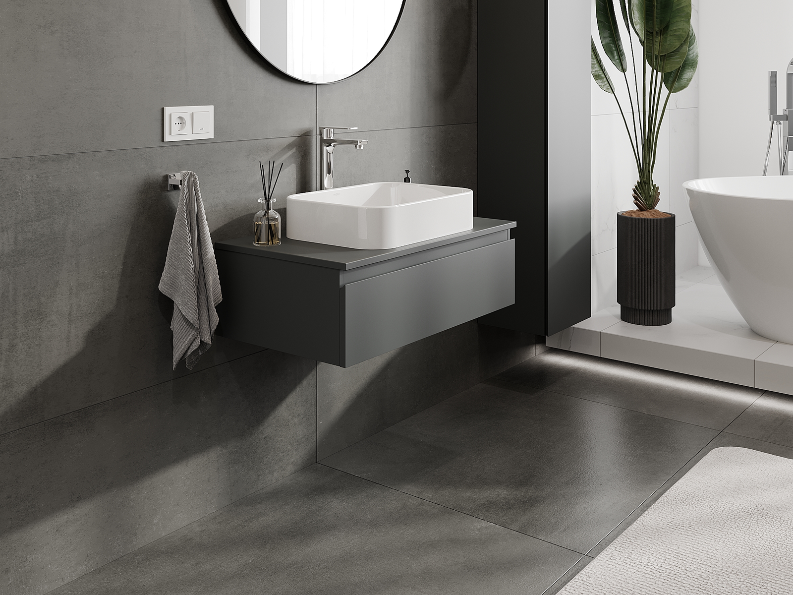 Корпусът на шкафа се доставя напълно сглобен, което означава максимално удобство и спестяване на време. Не е нужно да губите часове за сглобяване на мебела – просто го монтирайте на избраното място в банята. Това е идеалното решение за хора, които ценят бързия монтаж и незабавния ефект.