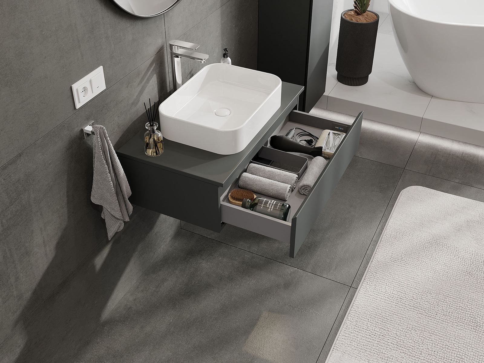 Mexen Orio шкаф за баня под мивка 80 см, 1 чекмедже, графит мат - 91A10-08023-1-BF66
