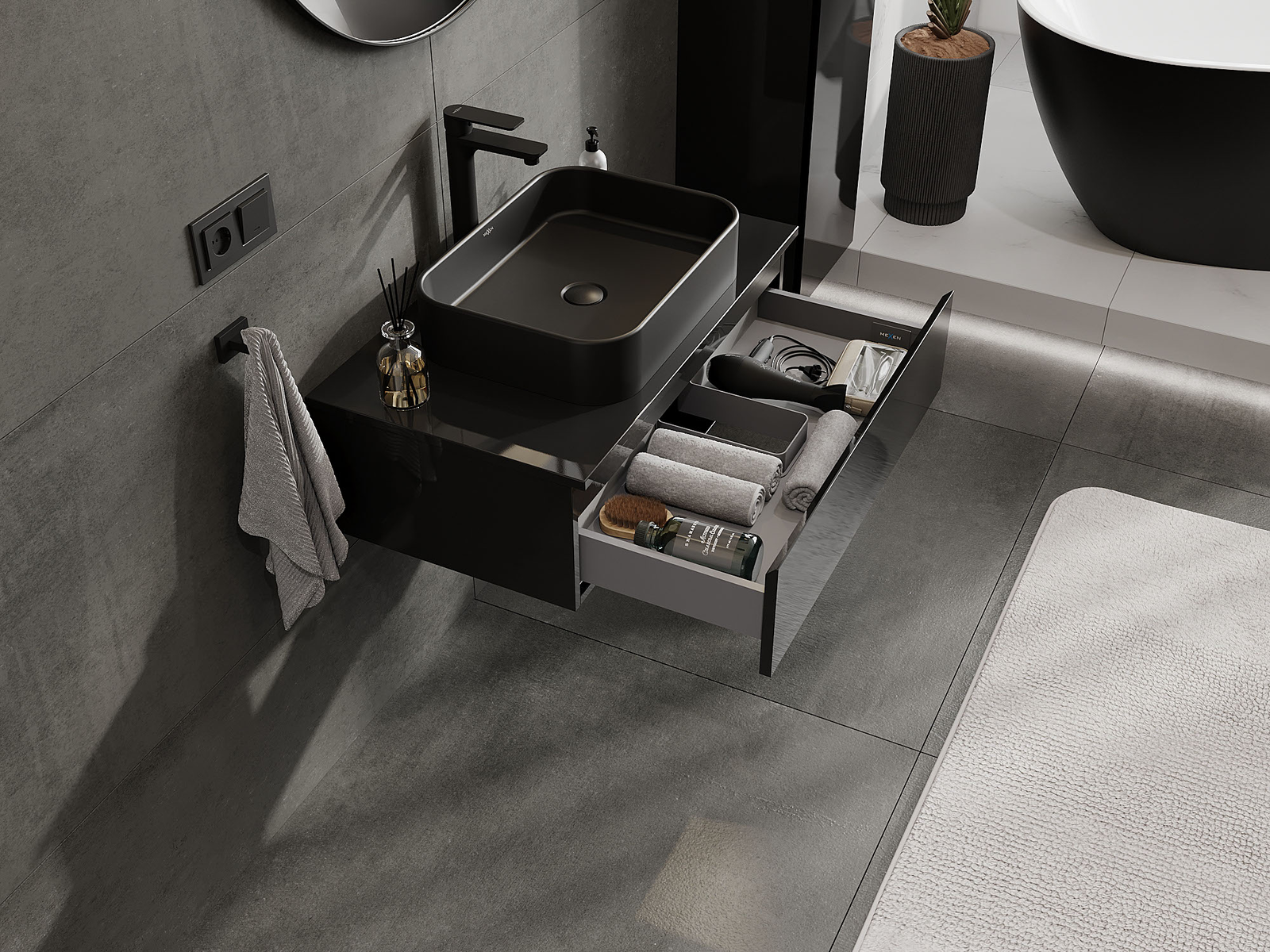 Mexen Orio шкаф за баня под мивка 80 см, 1 чекмедже, черен гланц - 91A10-08023-1-BF70