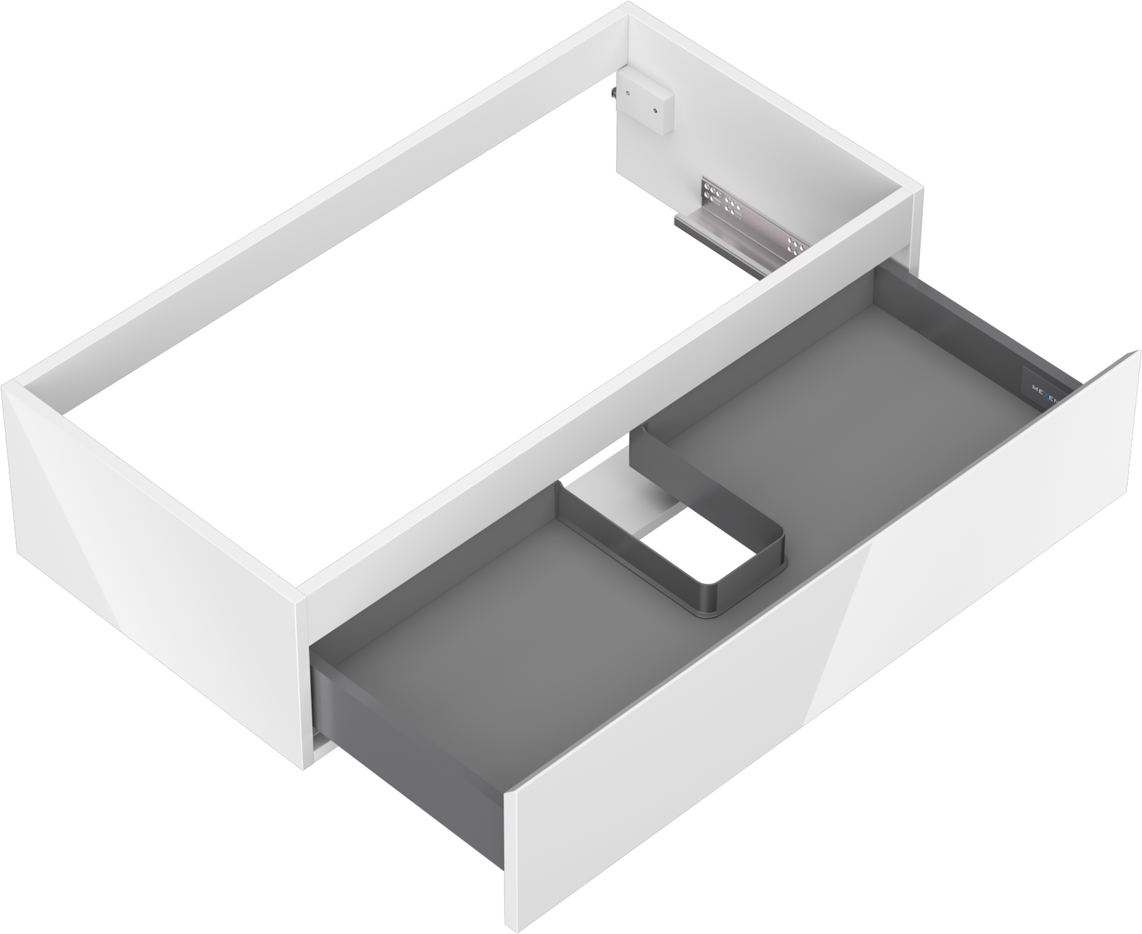 Изрезът в чекмеджето е проектиран по такъв начин, че да побере сифона, който е необходим в мивковите инсталации. Благодарение на това мебелът може да бъде монтиран напълно функционално, без да се налага отказване от пространството в чекмеджето заради инсталацията.