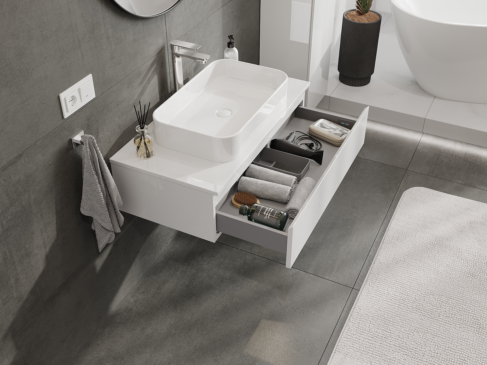 Нашите модулни мебели за баня могат да се комбинират в различни цветови конфигурации, което позволява пълна персонализация. Може да се избере както външният вид, така и функциите на отделните елементи, което позволява съчетаване на мебелите със собствените стилови и функционални предпочитания.