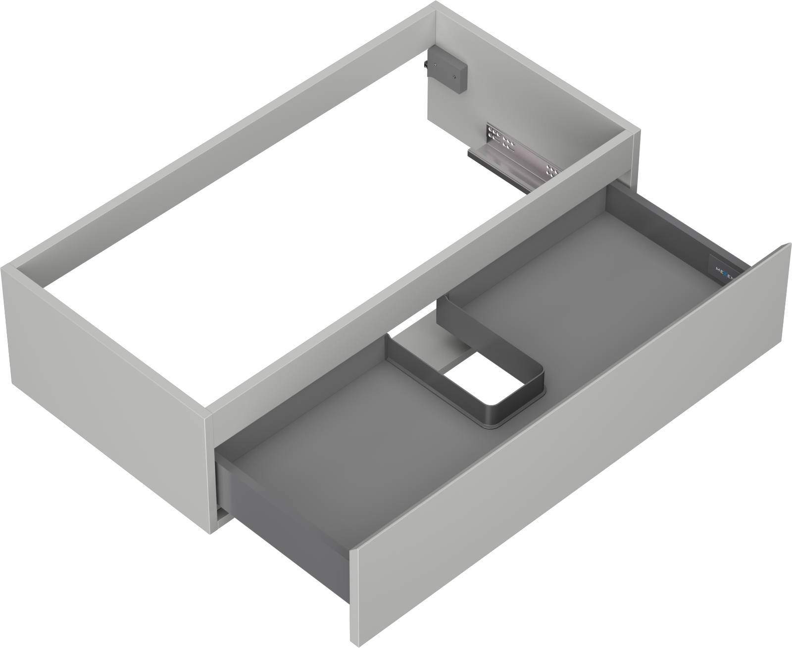 Изрезът в чекмеджето е проектиран по такъв начин, че да побере сифона, който е необходим в мивковите инсталации. Благодарение на това мебелът може да бъде монтиран напълно функционално, без да се налага отказване от пространството в чекмеджето заради инсталацията.