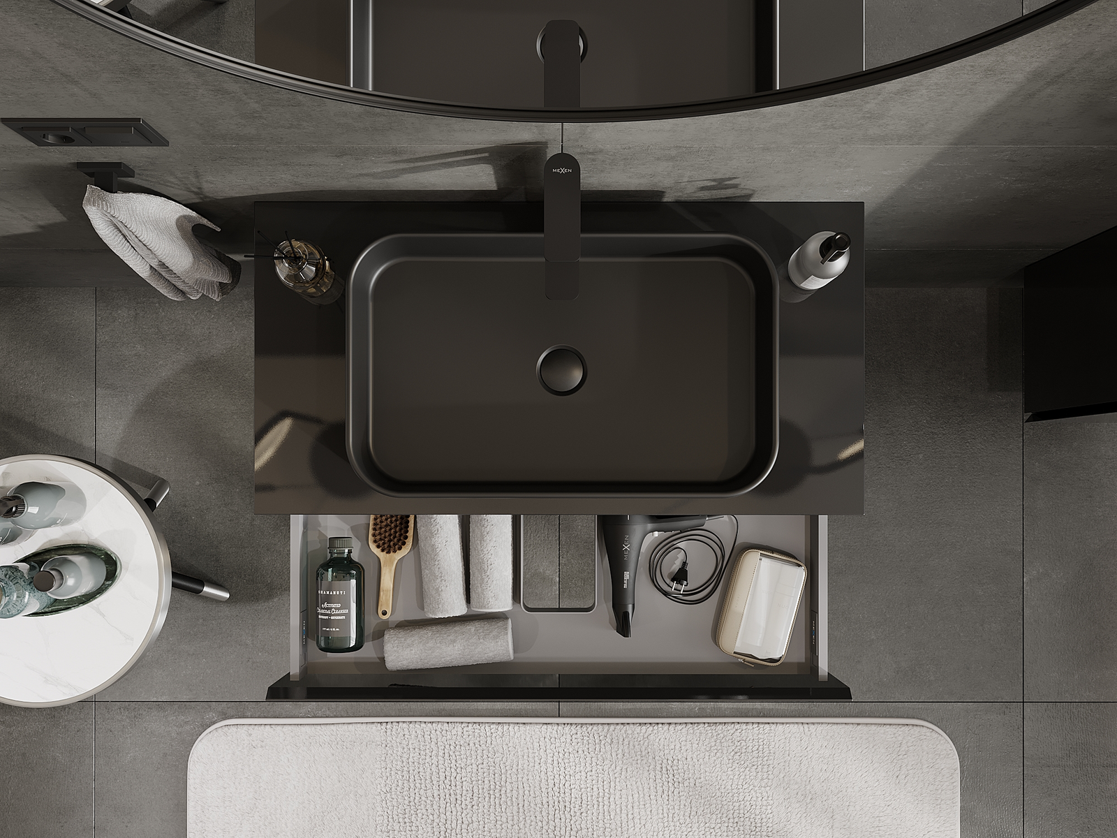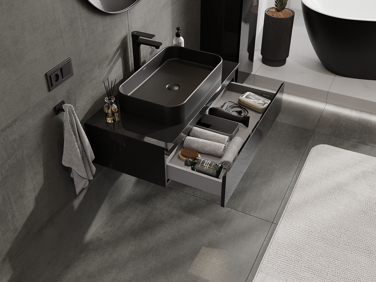 Mexen Orio шкафче за баня за мивка 90 см, 1 чекмедже, черен гланц - 91A10-09023-1-BF70