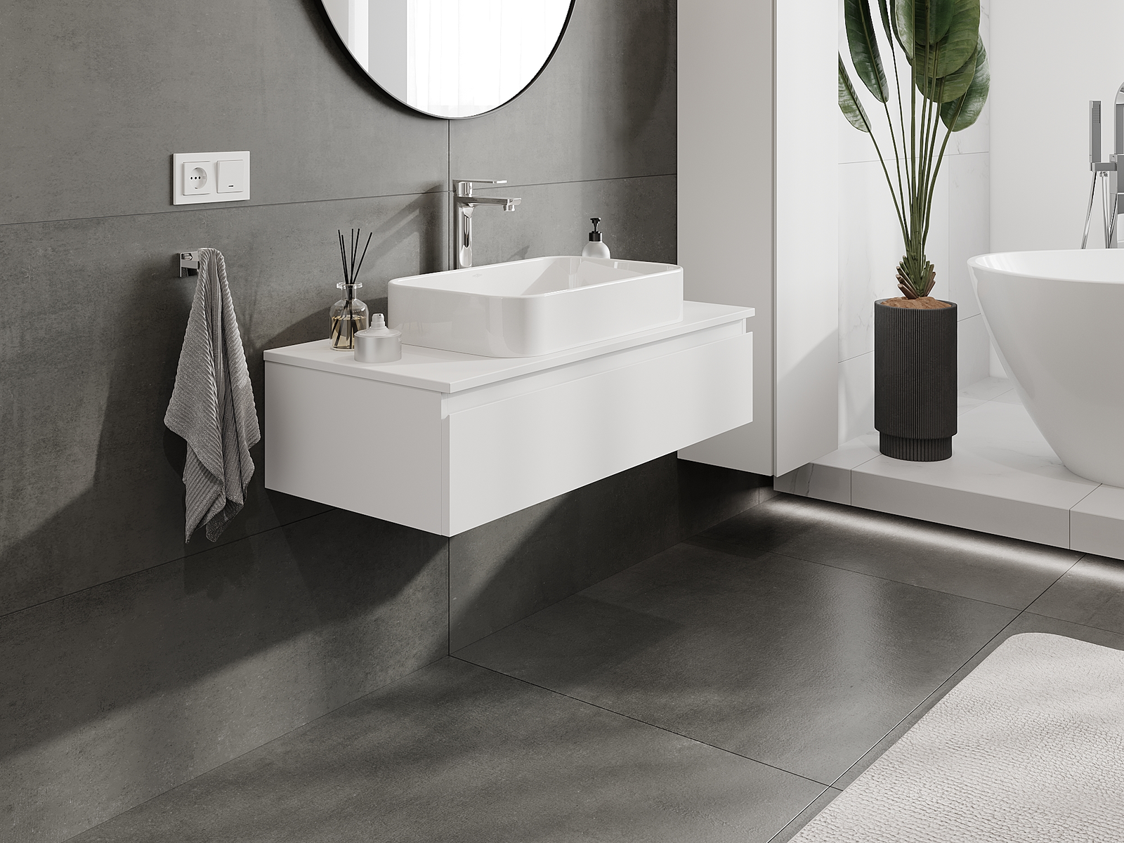 Корпусът на шкафа се доставя напълно сглобен, което означава максимално удобство и спестяване на време. Не е нужно да губите часове за сглобяване на мебела – просто го монтирайте на избраното място в банята. Това е идеалното решение за хора, които ценят бързия монтаж и незабавния ефект.