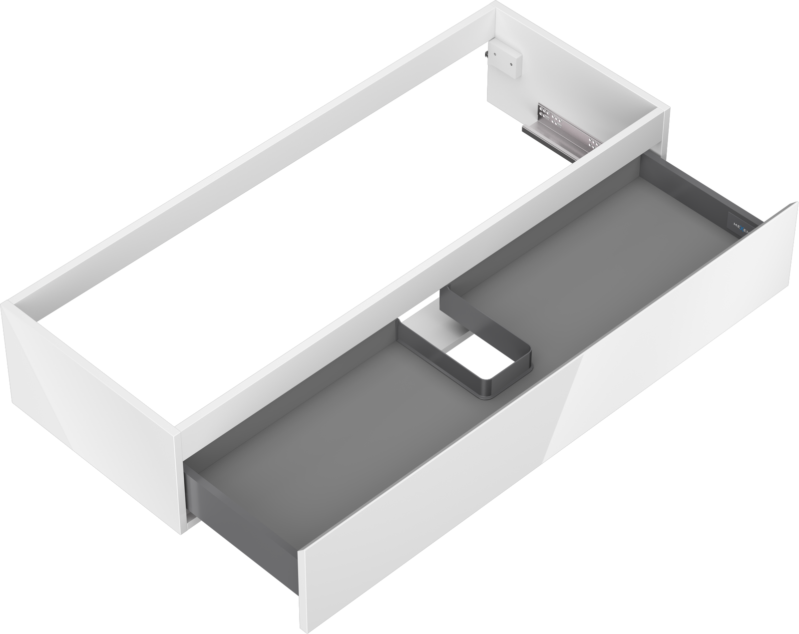 Изрезът в чекмеджето е проектиран по такъв начин, че да побере сифона, който е необходим в мивковите инсталации. Благодарение на това мебелът може да бъде монтиран напълно функционално, без да се налага отказване от пространството в чекмеджето заради инсталацията.