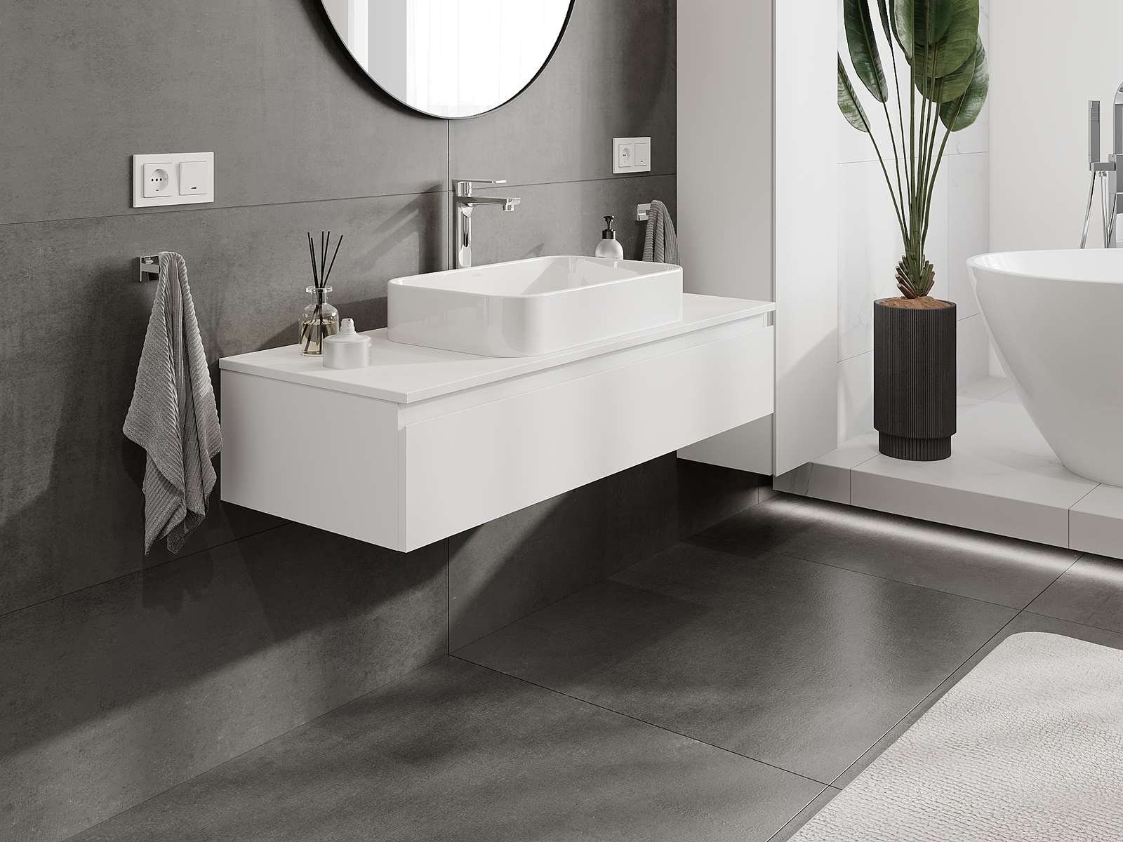 Нашите модулни мебели за баня могат да се комбинират в различни цветови конфигурации, което позволява пълна персонализация. Може да се избере както външният вид, така и функциите на отделните елементи, което позволява съчетаване на мебелите със собствените стилови и функционални предпочитания.