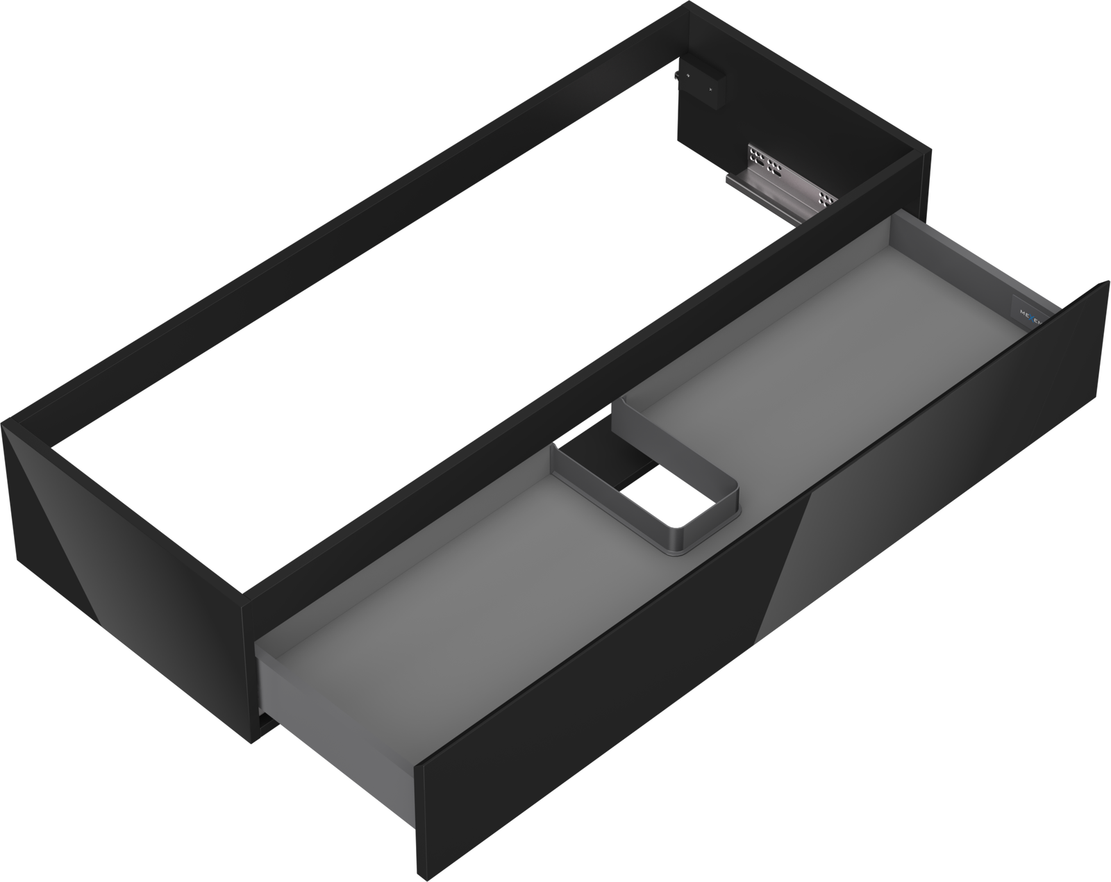 Изрезът в чекмеджето е проектиран по такъв начин, че да побере сифона, който е необходим в мивковите инсталации. Благодарение на това мебелът може да бъде монтиран напълно функционално, без да се налага отказване от пространството в чекмеджето заради инсталацията.