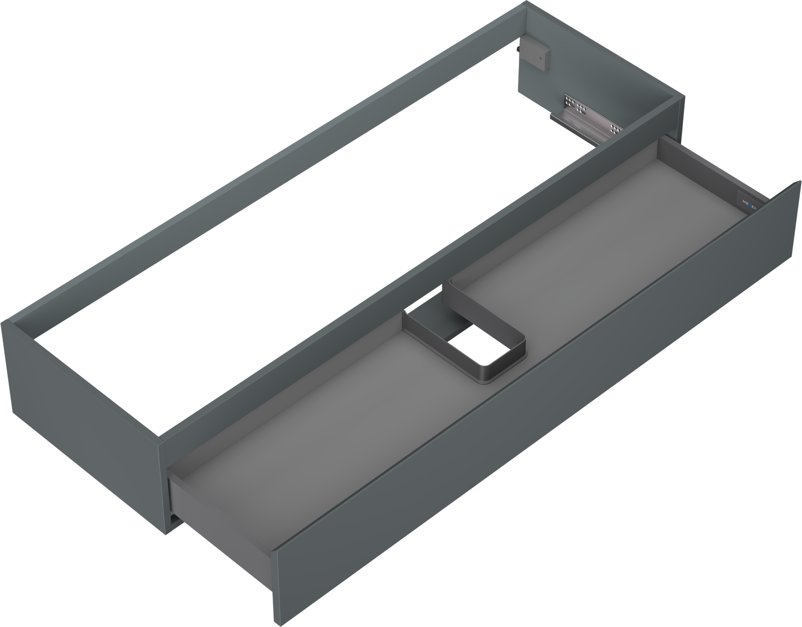 Изрезът в чекмеджето е проектиран по такъв начин, че да побере сифона, който е необходим в мивковите инсталации. Благодарение на това мебелът може да бъде монтиран напълно функционално, без да се налага отказване от пространството в чекмеджето заради инсталацията.