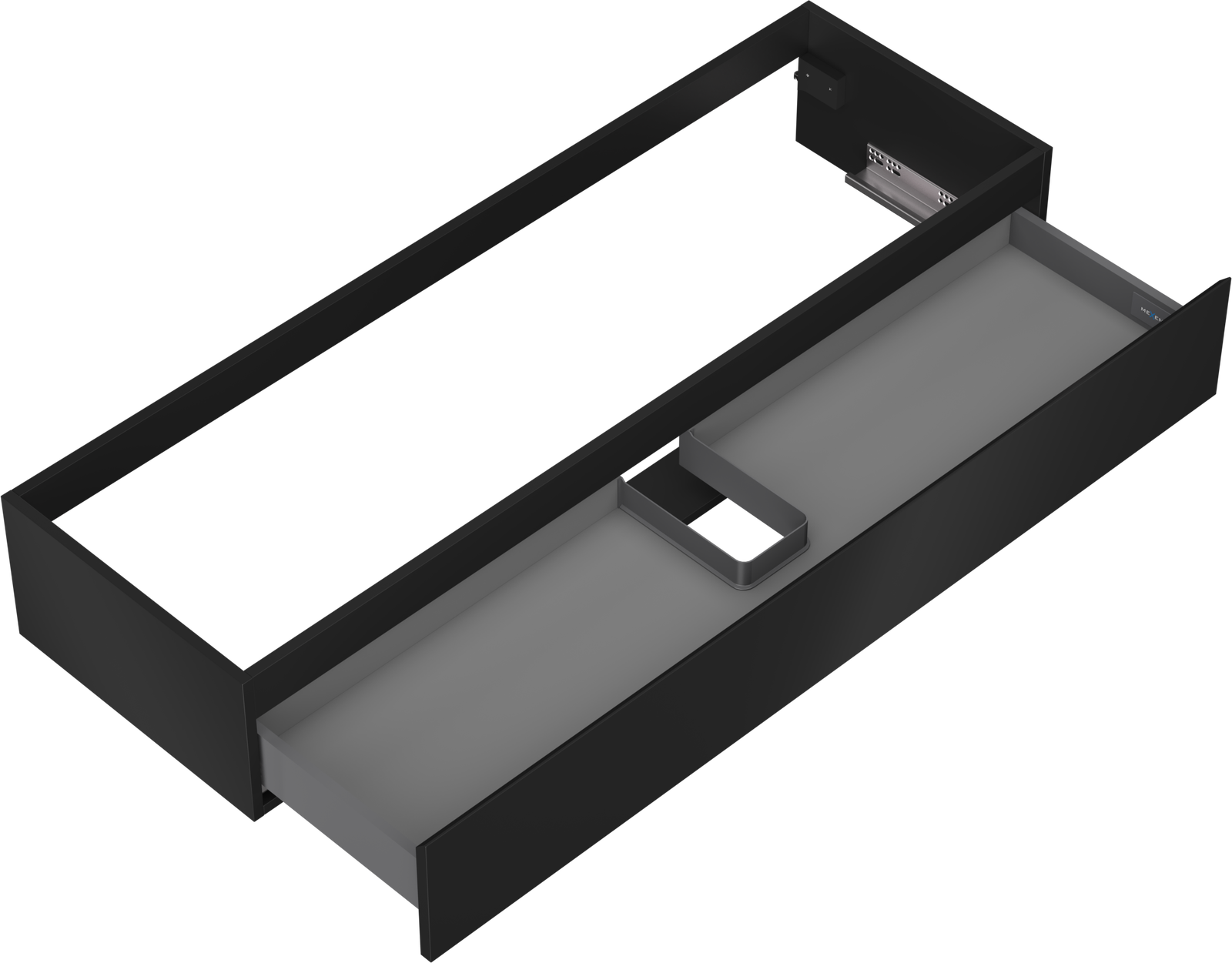 Изрезът в чекмеджето е проектиран по такъв начин, че да побере сифона, който е необходим в мивковите инсталации. Благодарение на това мебелът може да бъде монтиран напълно функционално, без да се налага отказване от пространството в чекмеджето заради инсталацията.
