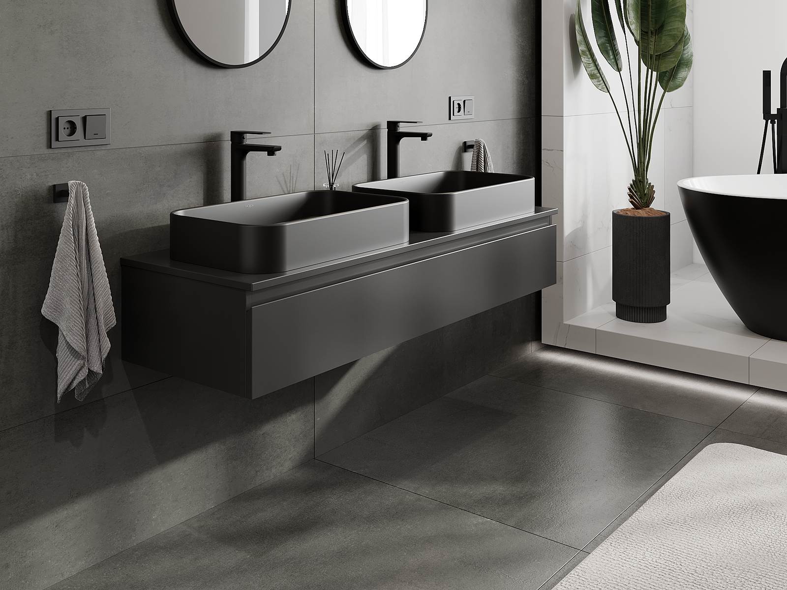 Нашите модулни мебели за баня могат да се комбинират в различни цветови конфигурации, което позволява пълна персонализация. Може да се избере както външният вид, така и функциите на отделните елементи, което позволява съчетаване на мебелите със собствените стилови и функционални предпочитания.