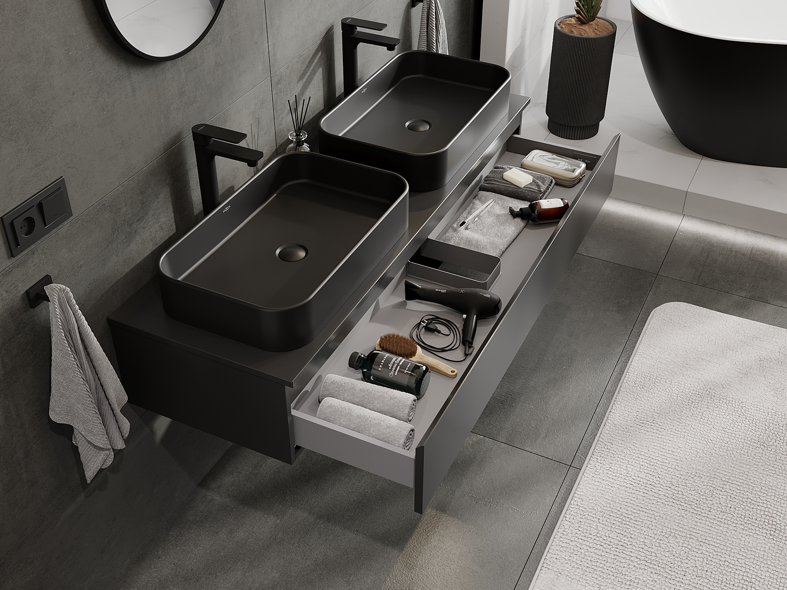Mexen Orio шкаф за баня за мивка 140 cm, 1 чекмедже, черен мат - 91A10-14023-1-BF71