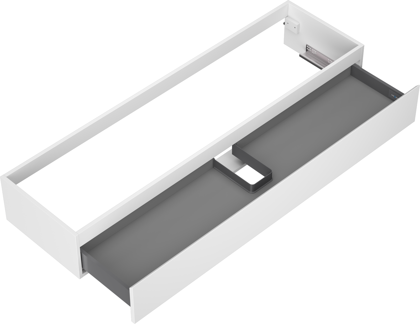 Изрезът в чекмеджето е проектиран по такъв начин, че да побере сифона, който е необходим в мивковите инсталации. Благодарение на това мебелът може да бъде монтиран напълно функционално, без да се налага отказване от пространството в чекмеджето заради инсталацията.