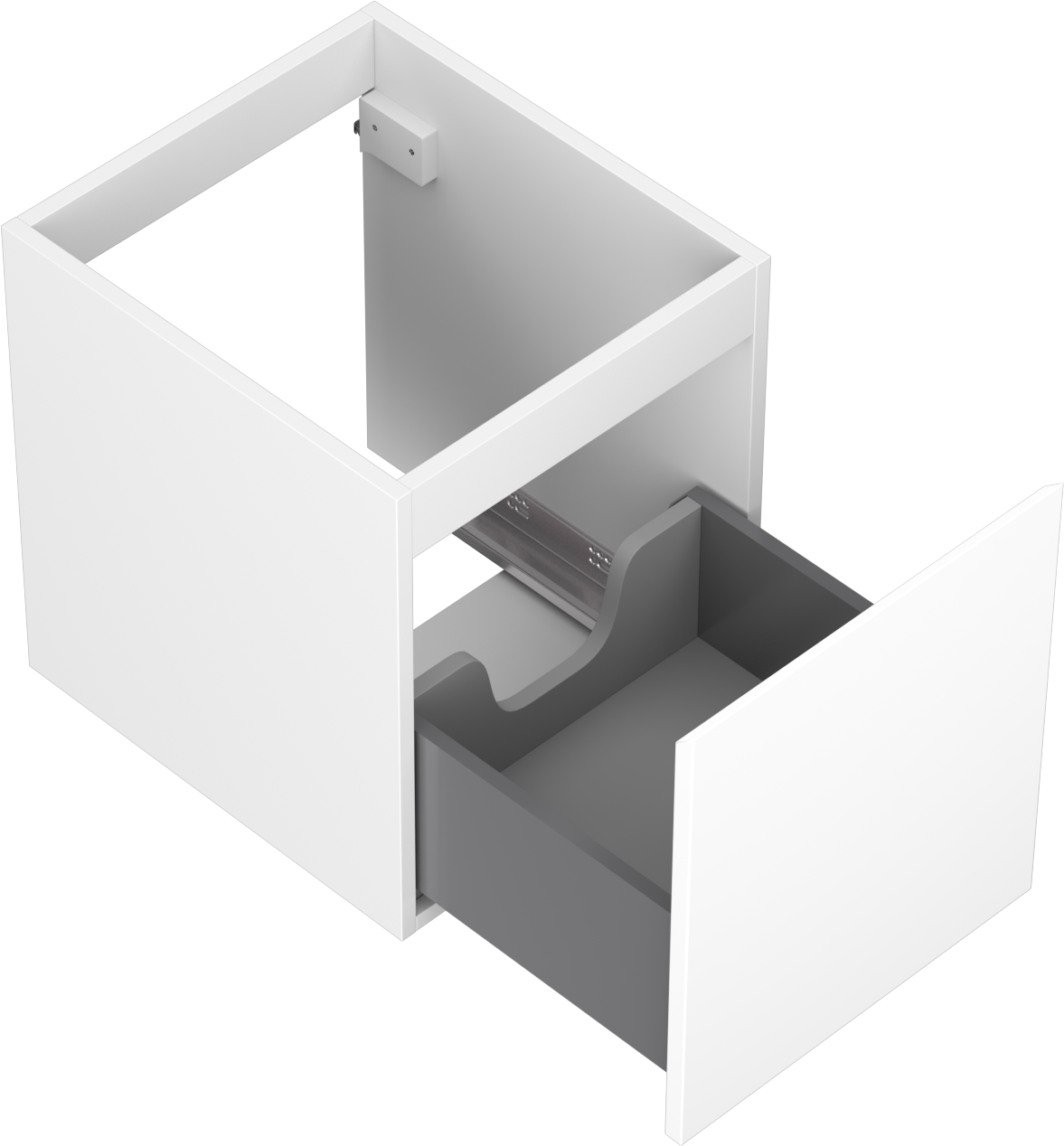 Изрезът в чекмеджето е проектиран по такъв начин, че да побере сифона, който е необходим в мивковите инсталации. Благодарение на това мебелът може да бъде монтиран напълно функционално, без да се налага отказване от пространството в чекмеджето заради инсталацията.