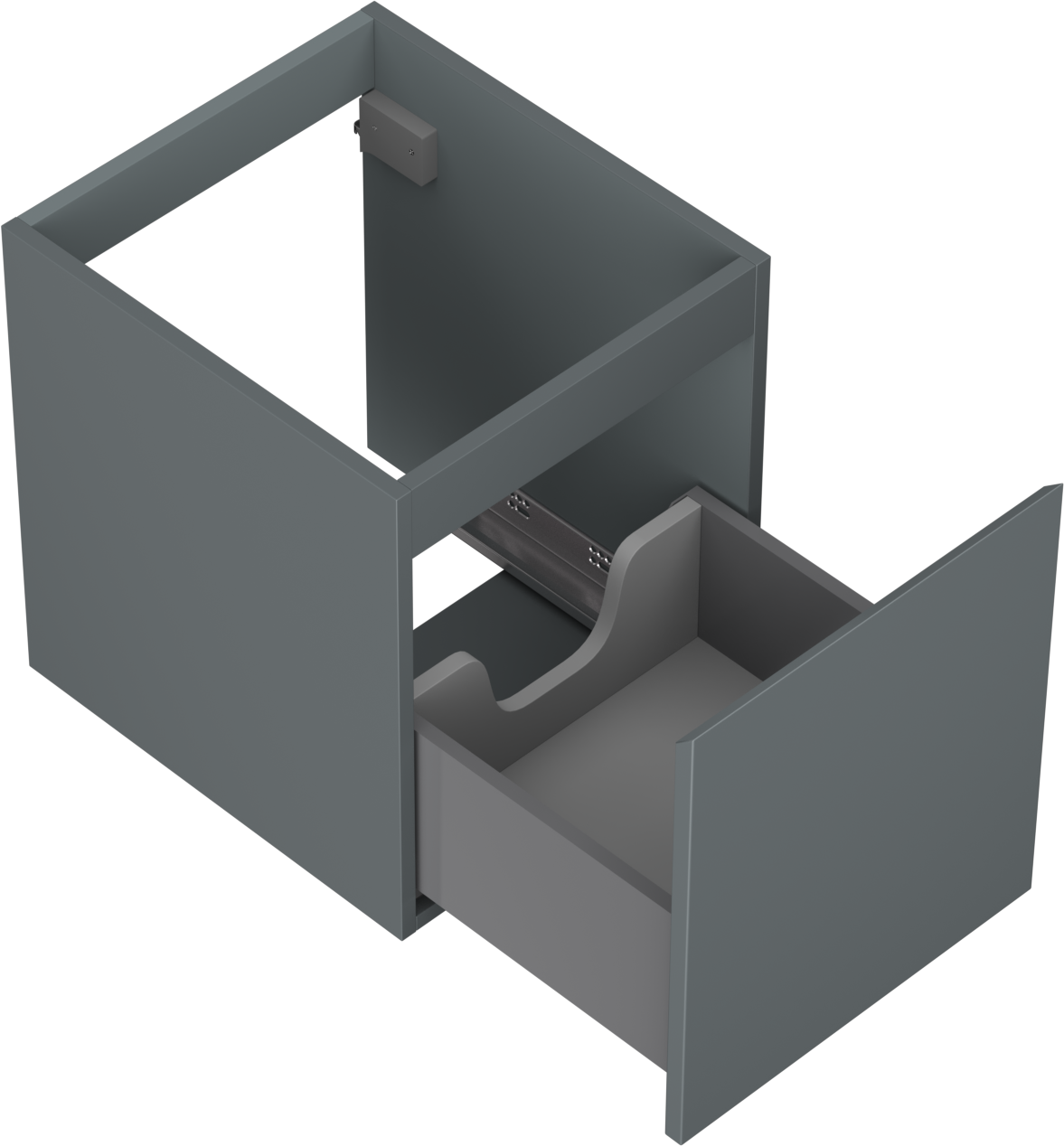 Изрезът в чекмеджето е проектиран по такъв начин, че да побере сифона, който е необходим в мивковите инсталации. Благодарение на това мебелът може да бъде монтиран напълно функционално, без да се налага отказване от пространството в чекмеджето заради инсталацията.