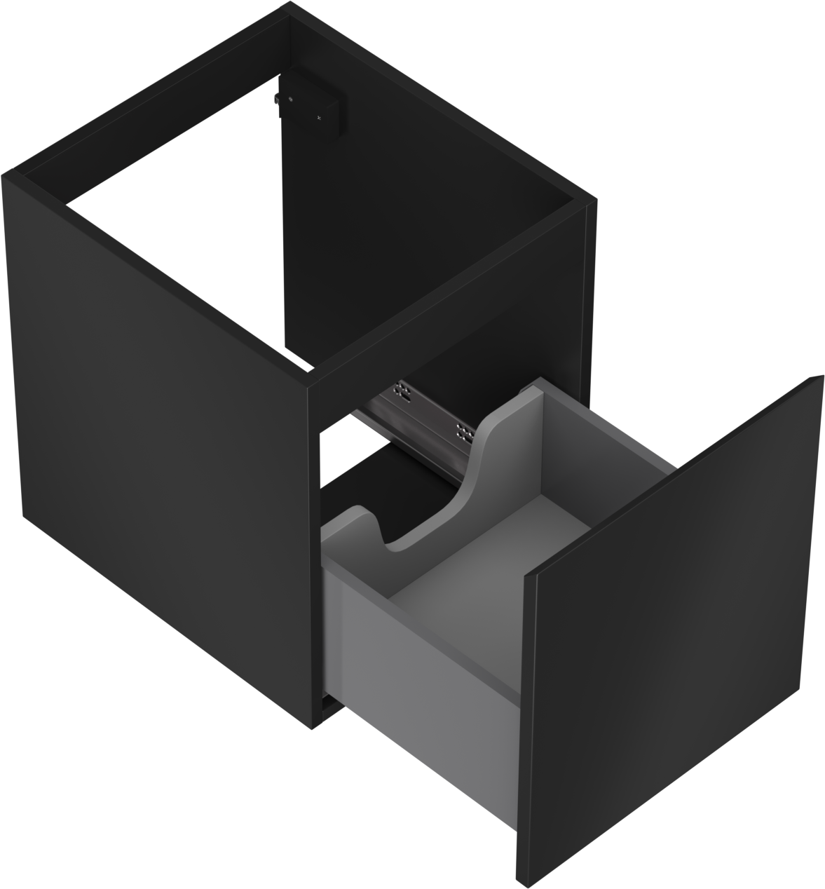 Изрезът в чекмеджето е проектиран по такъв начин, че да побере сифона, който е необходим в мивковите инсталации. Благодарение на това мебелът може да бъде монтиран напълно функционално, без да се налага отказване от пространството в чекмеджето заради инсталацията.