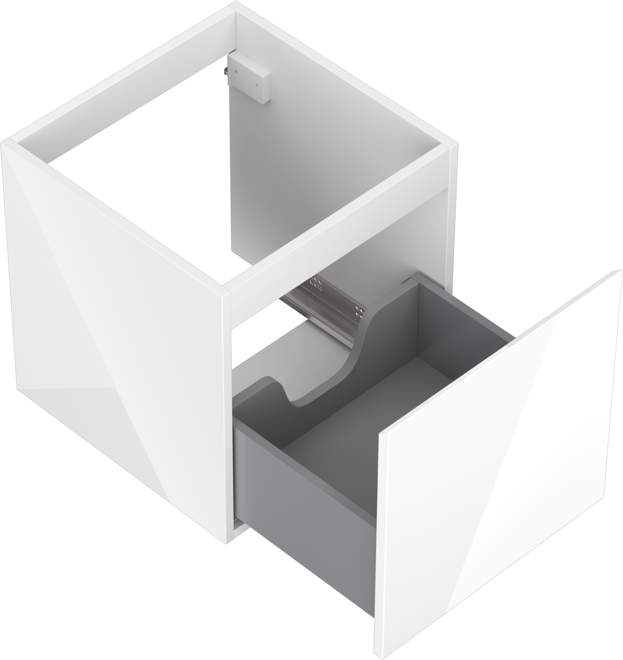 Изрезът в чекмеджето е проектиран по такъв начин, че да побере сифона, който е необходим в мивковите инсталации. Благодарение на това мебелът може да бъде монтиран напълно функционално, без да се налага отказване от пространството в чекмеджето заради инсталацията.