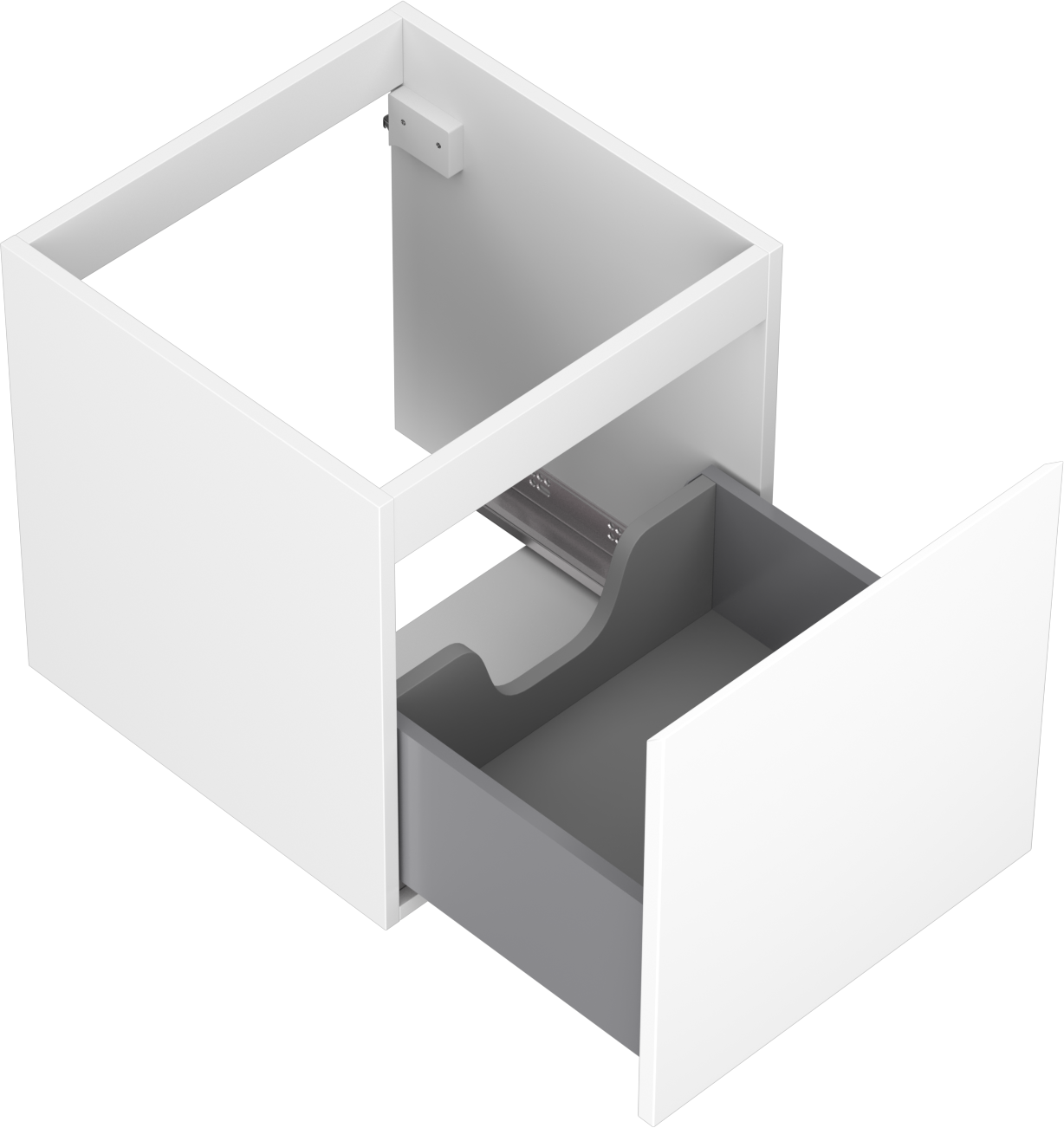 Изрезът в чекмеджето е проектиран по такъв начин, че да побере сифона, който е необходим в мивковите инсталации. Благодарение на това мебелът може да бъде монтиран напълно функционално, без да се налага отказване от пространството в чекмеджето заради инсталацията.