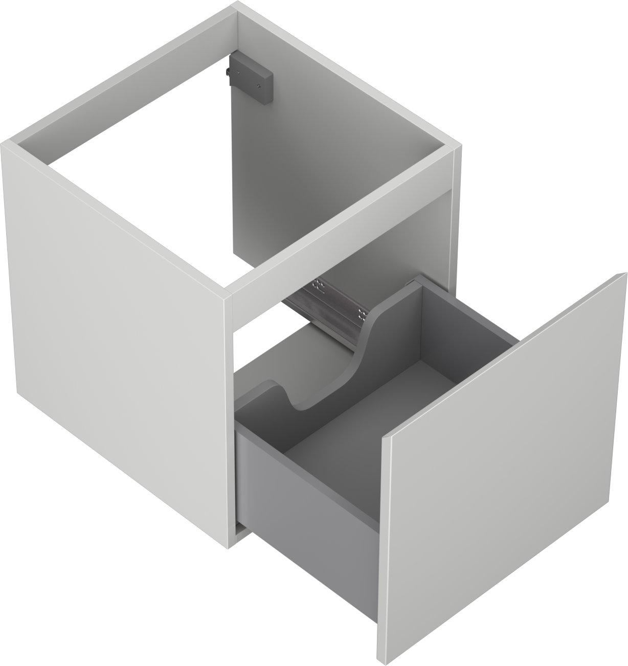Изрезът в чекмеджето е проектиран по такъв начин, че да побере сифона, който е необходим в мивковите инсталации. Благодарение на това мебелът може да бъде монтиран напълно функционално, без да се налага отказване от пространството в чекмеджето заради инсталацията.