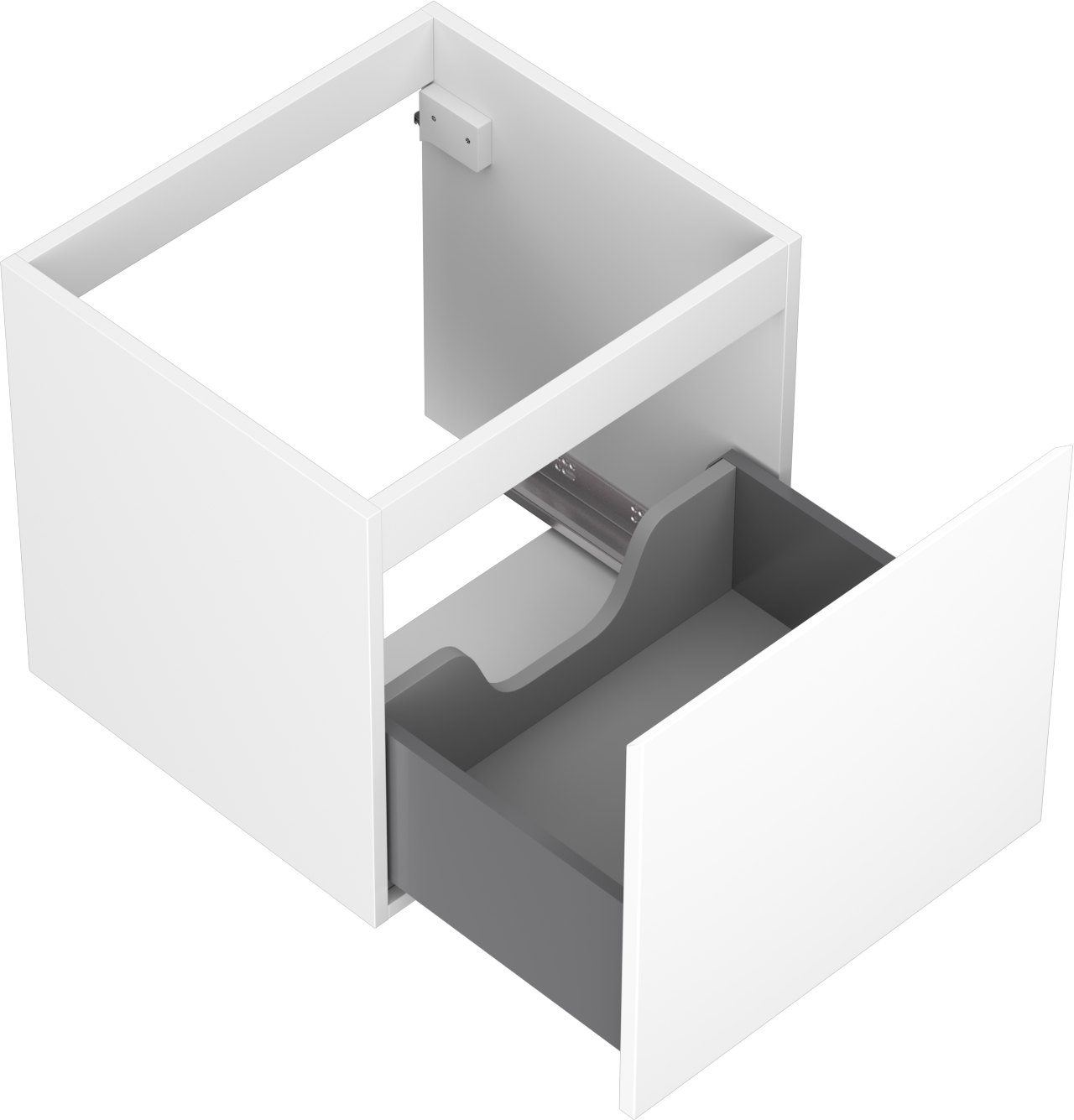 Изрезът в чекмеджето е проектиран по такъв начин, че да побере сифона, който е необходим в мивковите инсталации. Благодарение на това мебелът може да бъде монтиран напълно функционално, без да се налага отказване от пространството в чекмеджето заради инсталацията.