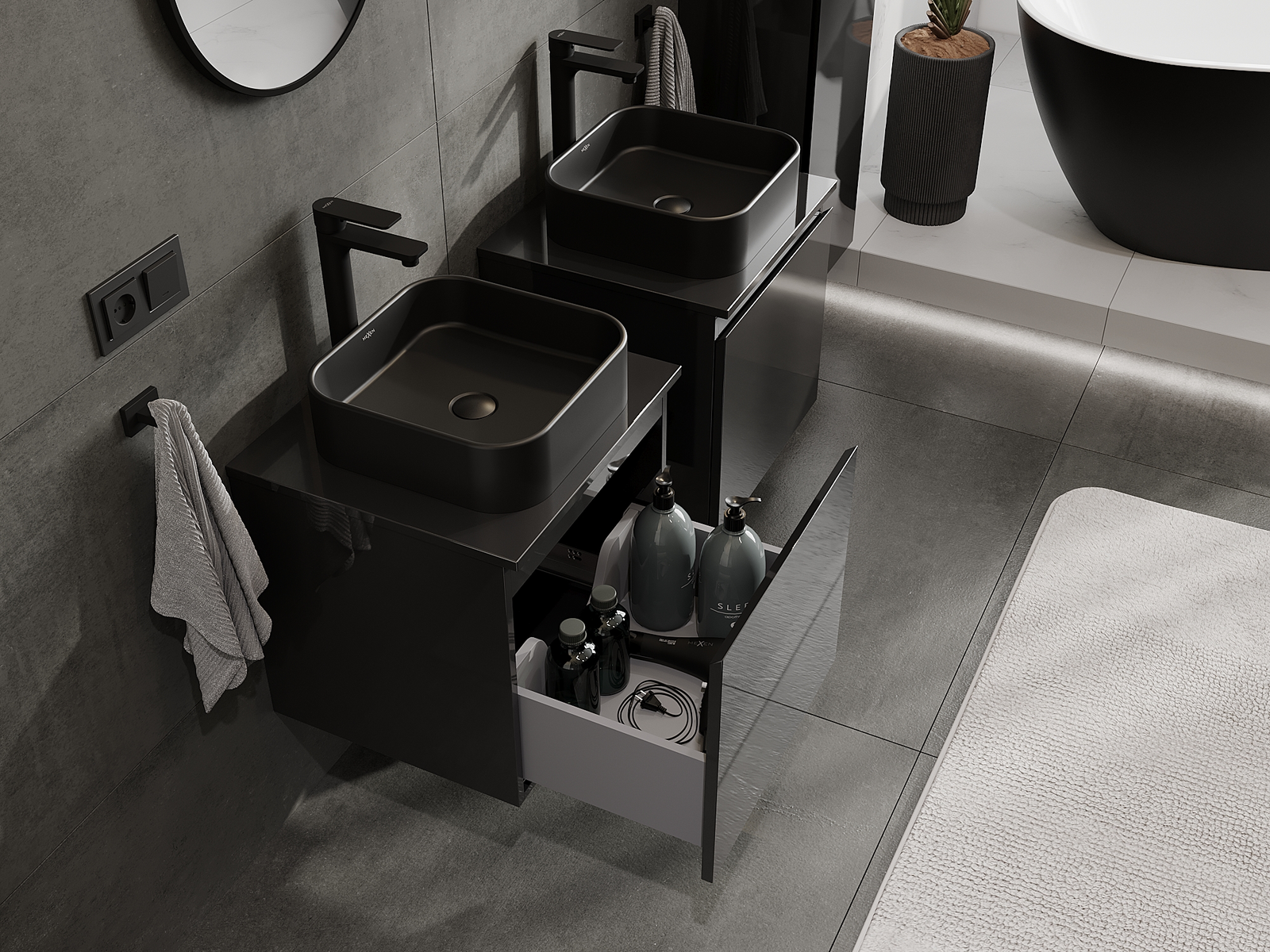 Нашите модулни мебели за баня могат да се комбинират в различни цветови конфигурации, което позволява пълна персонализация. Може да се избере както външният вид, така и функциите на отделните елементи, което позволява съчетаване на мебелите със собствените стилови и функционални предпочитания.