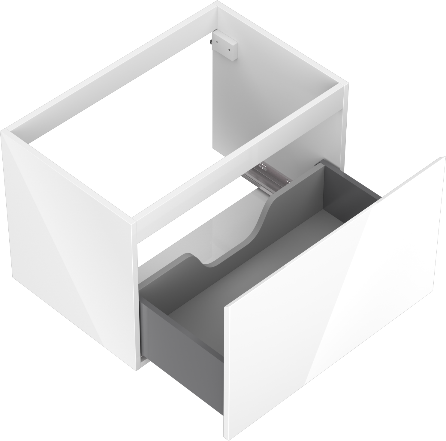 Изрезът в чекмеджето е проектиран по такъв начин, че да побере сифона, който е необходим в мивковите инсталации. Благодарение на това мебелът може да бъде монтиран напълно функционално, без да се налага отказване от пространството в чекмеджето заради инсталацията.