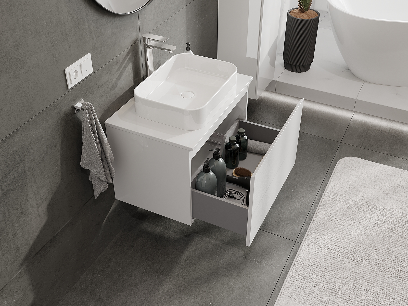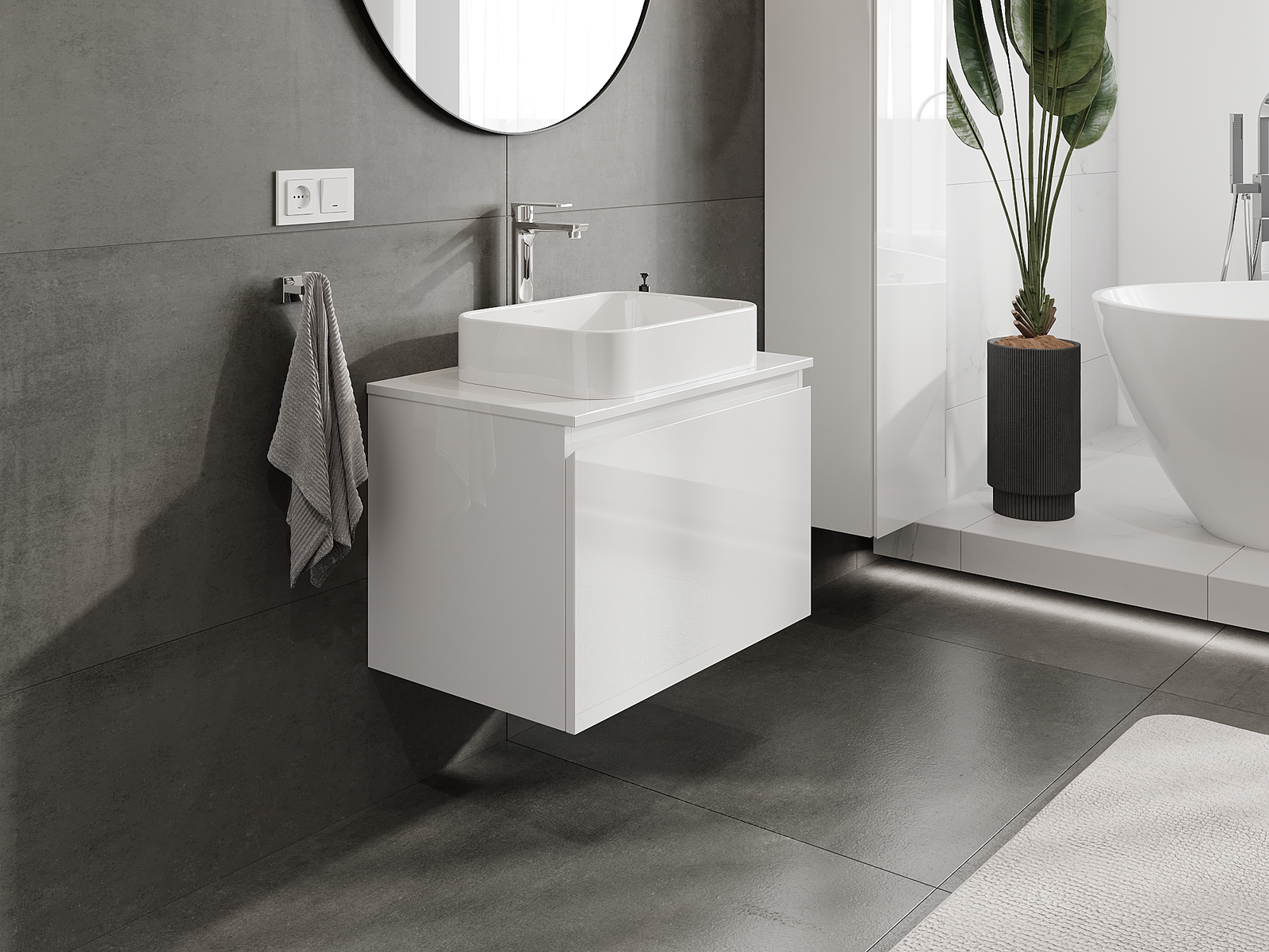 Корпусът на шкафа се доставя напълно сглобен, което означава максимално удобство и спестяване на време. Не е нужно да губите часове за сглобяване на мебела – просто го монтирайте на избраното място в банята. Това е идеалното решение за хора, които ценят бързия монтаж и незабавния ефект.