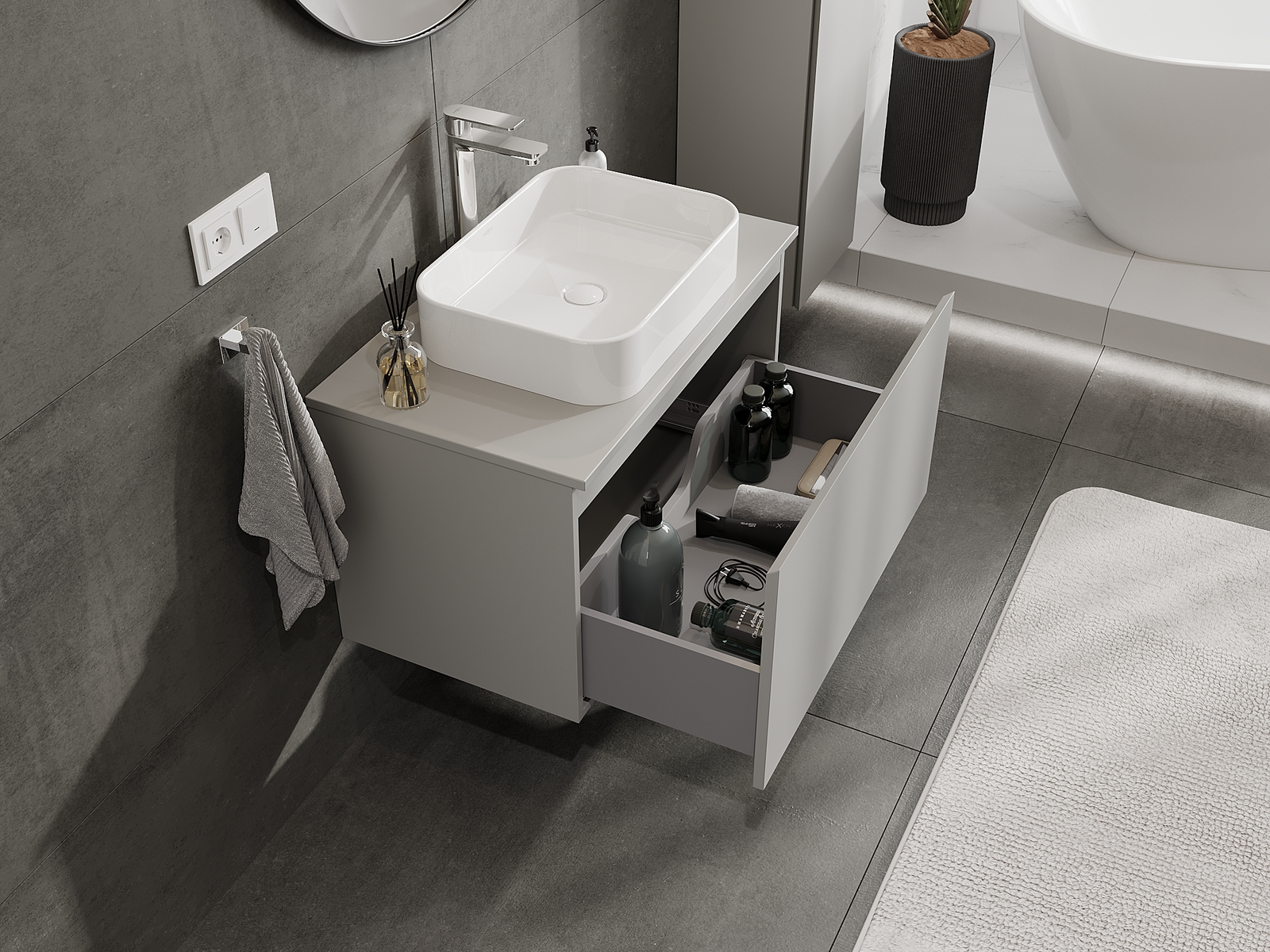 Нашите модулни мебели за баня могат да се комбинират в различни цветови конфигурации, което позволява пълна персонализация. Може да се избере както външният вид, така и функциите на отделните елементи, което позволява съчетаване на мебелите със собствените стилови и функционални предпочитания.