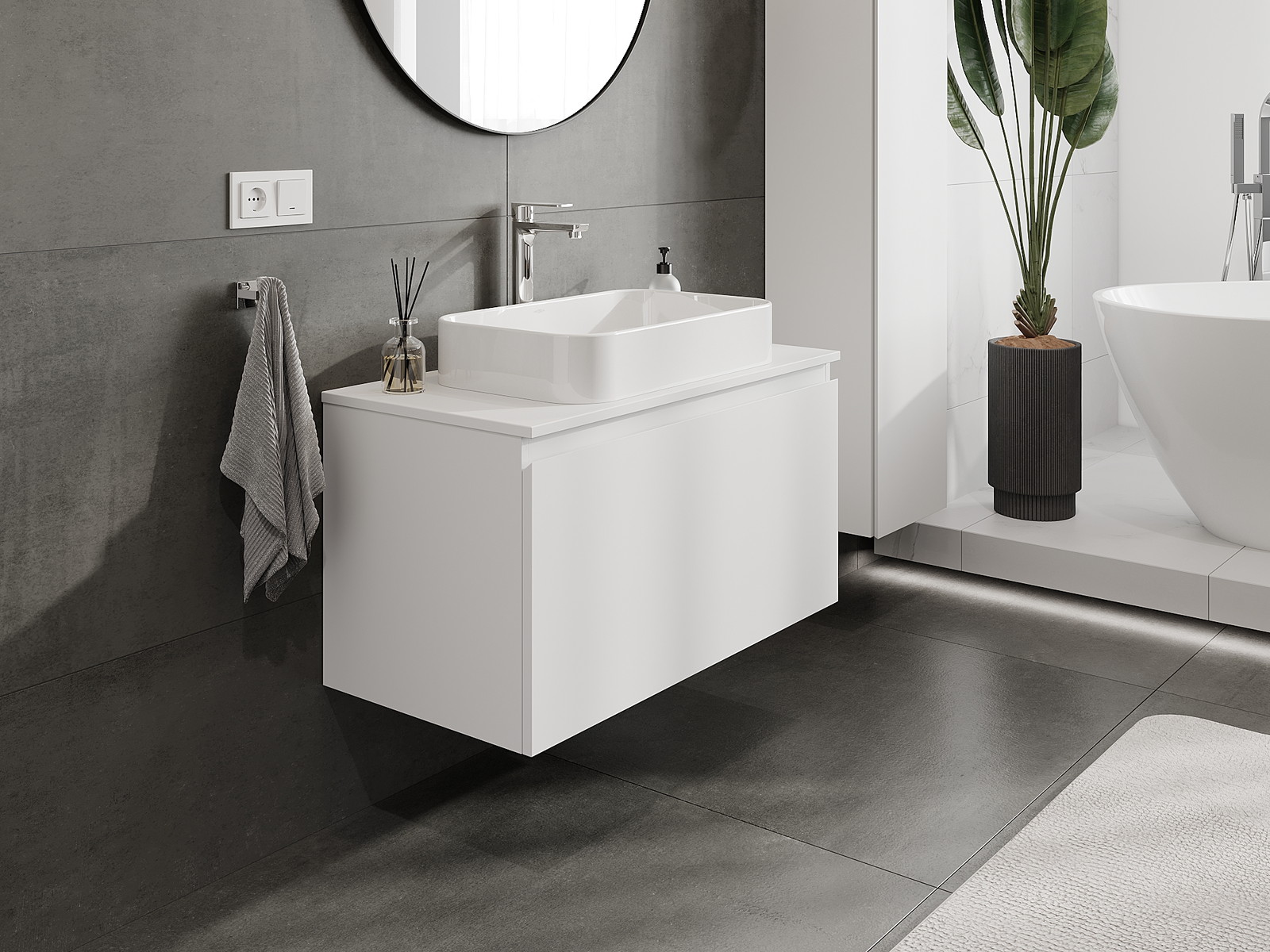 Корпусът на шкафа се доставя напълно сглобен, което означава максимално удобство и спестяване на време. Не е нужно да губите часове за сглобяване на мебела – просто го монтирайте на избраното място в банята. Това е идеалното решение за хора, които ценят бързия монтаж и незабавния ефект.