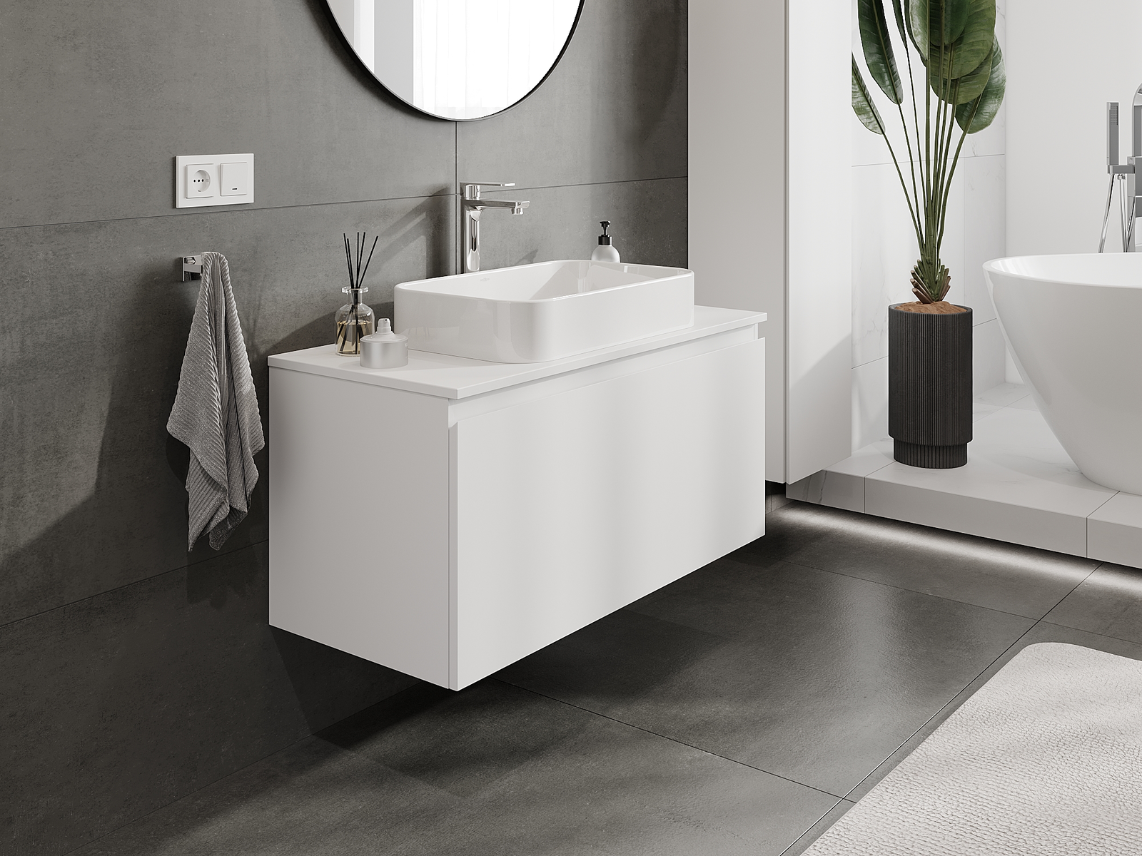 Корпусът на шкафа се доставя напълно сглобен, което означава максимално удобство и спестяване на време. Не е нужно да губите часове за сглобяване на мебела – просто го монтирайте на избраното място в банята. Това е идеалното решение за хора, които ценят бързия монтаж и незабавния ефект.
