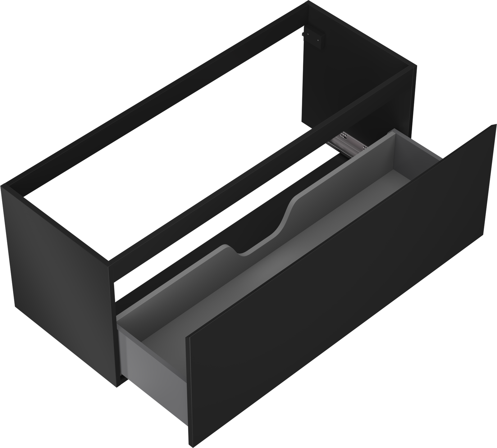 Изрезът в чекмеджето е проектиран по такъв начин, че да побере сифона, който е необходим в мивковите инсталации. Благодарение на това мебелът може да бъде монтиран напълно функционално, без да се налага отказване от пространството в чекмеджето заради инсталацията.